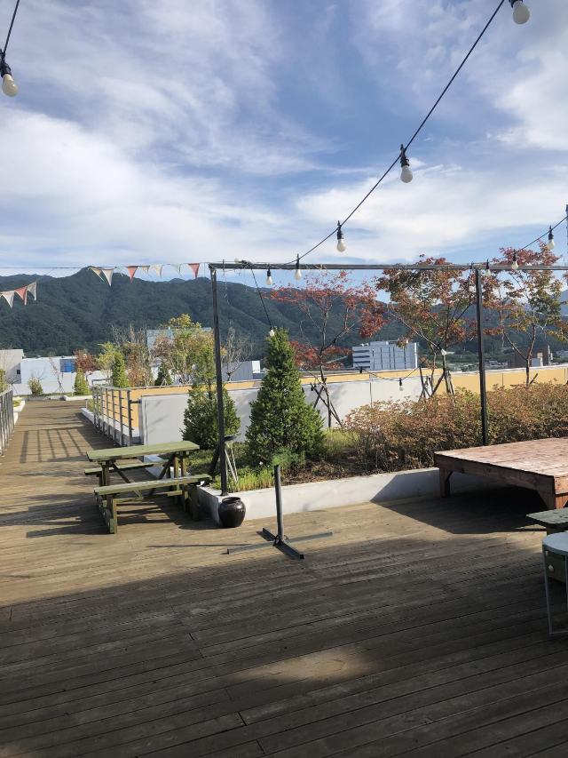 원주 혁신도시에 위치한 달링스 카페는 회의실 대여, 스터디룸 대여 서비스를 이용할 수 있습니다. 또한 루프탑 카페로 원주 혁신도시 메가박스 영화관이 있는 센트럴파크 투 탑층에 입점되어 치악산 전경과 원주 경치를 같이 볼 수 있어서 전망 좋은 대표적인 강원도 카페, 강원도 맛집이라고 할 수 있겠습니다.