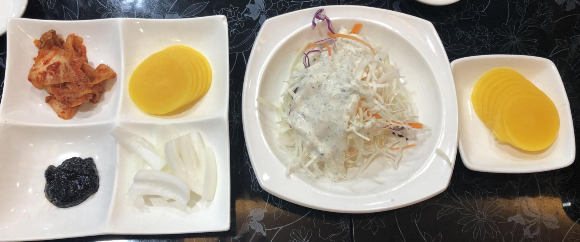 쟈스민 중국집에서는 김치, 단무지, 양파 외에 샐러드를 접시에 담아서 제공해 줍니다. 기름진 음식을 먹기 전에 신선한 샐러드를 먼저 먹으니 좋고 강원도 맛집답게 맛도 좋습니다. 참고로 샐러드는 리필도 해주십니다.