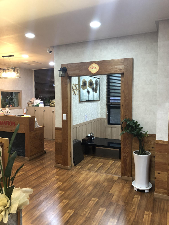 입구에는 신발장이 좌우로 있고 식탁형식의 홀이 있고, 안쪽으로는 단체방이 있는데 다양한 형태의 인원이 앉을 수 있는 5인용, 10인용 등의 방이 여러 개 있습니다.