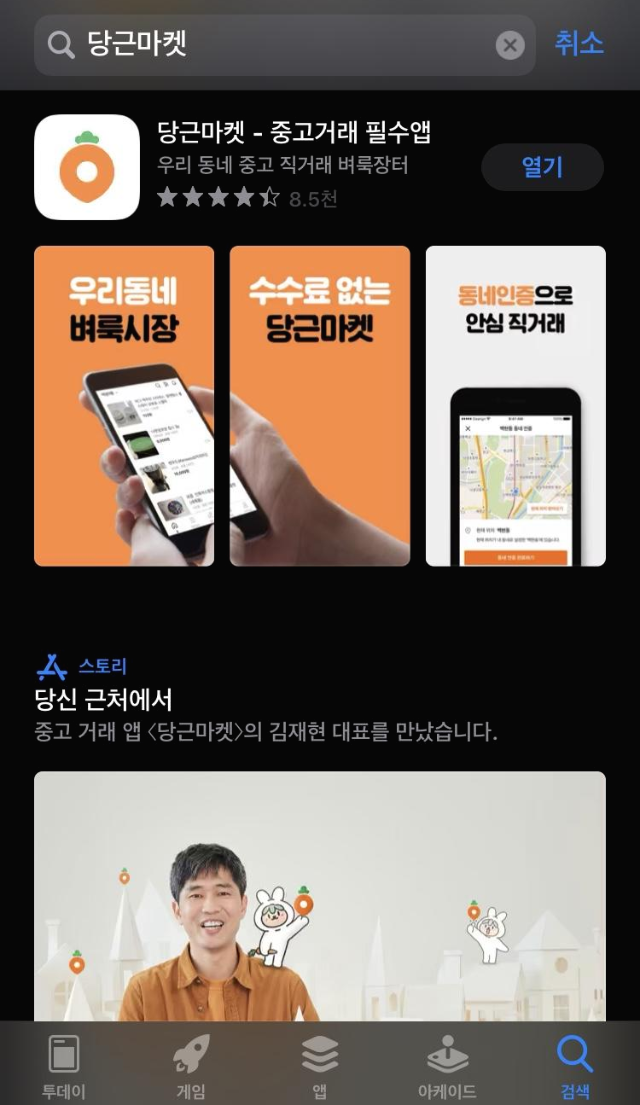 다음으로 다운로드 받은 당근마켓 어플을 다운로드 받아서 실해 시킨 후