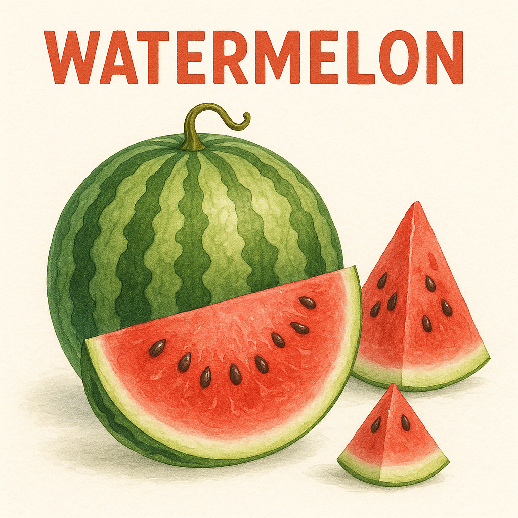 수박은 대표적인 여름 제철 과일로, 90% 이상이 수분으로 이루어진 고수분 과일입니다.