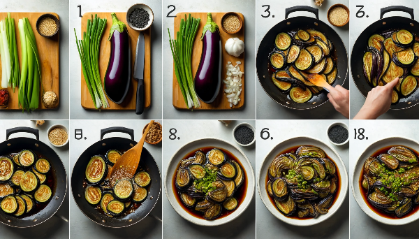 팬에 기름을 두르고 가지를 볶는다.
