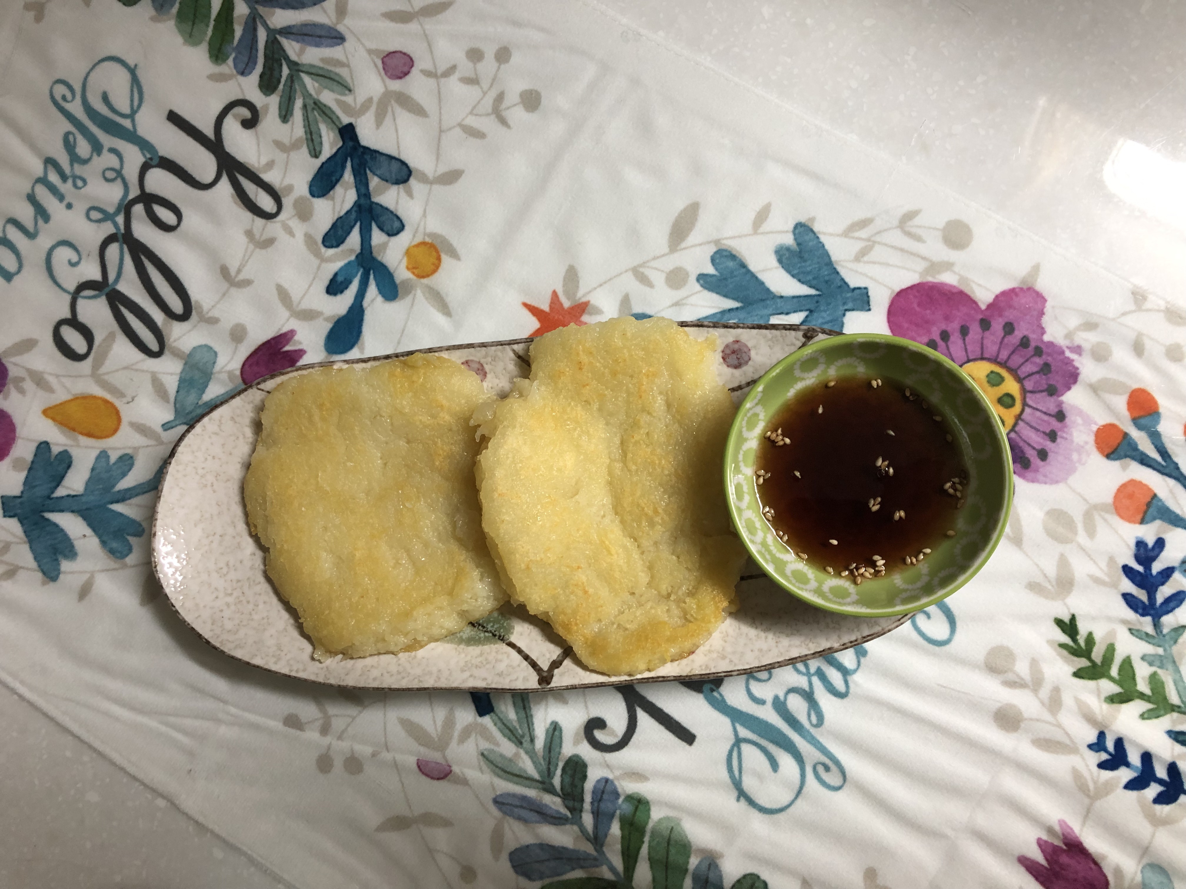 5. 감자 부침개를 담을 접시를 준비하여 감자부침개를 담고, 간장을 준비하도록 합니다.