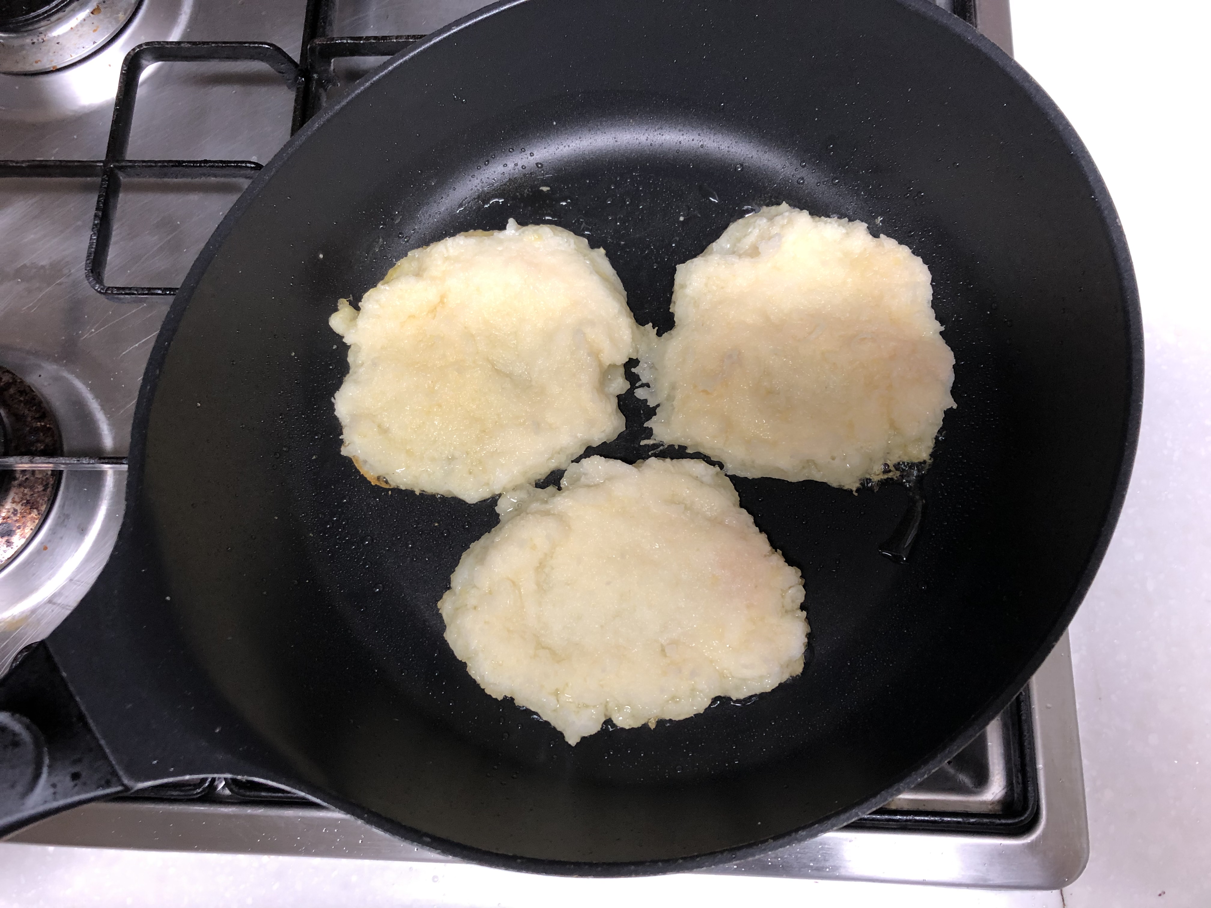 냄비에 쩌먹을까, 에어 후라이어에 구워 먹을까 고민하던 중에 감자 부침개를 만들어 먹는 걸로 결정,