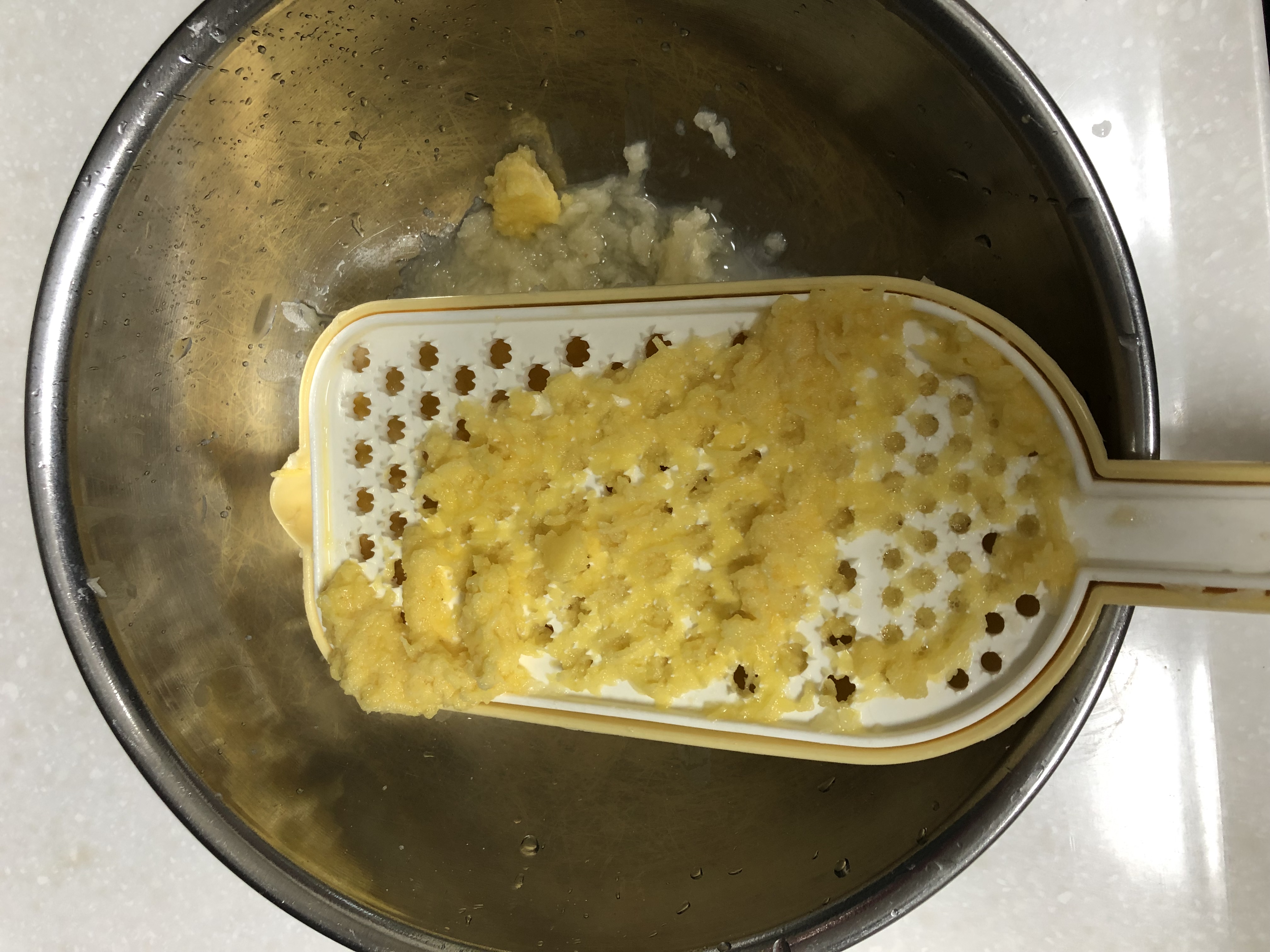 2. 씻을 감자를 강판에 갈아 줍니다.