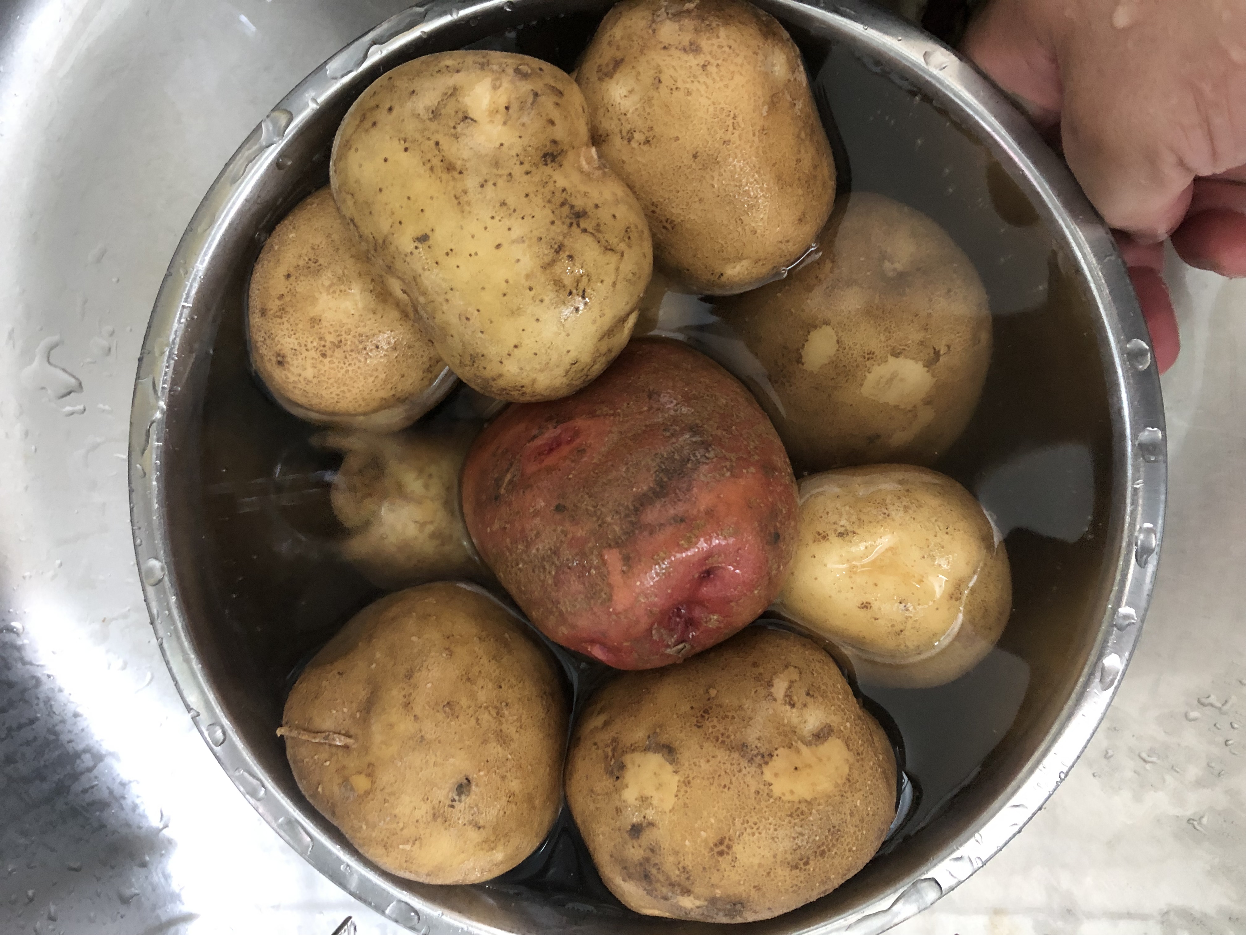 1. 준비한 감자를 씻고 껍질을 벗겨냅니다.