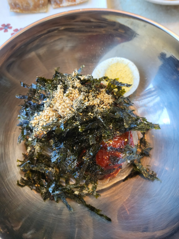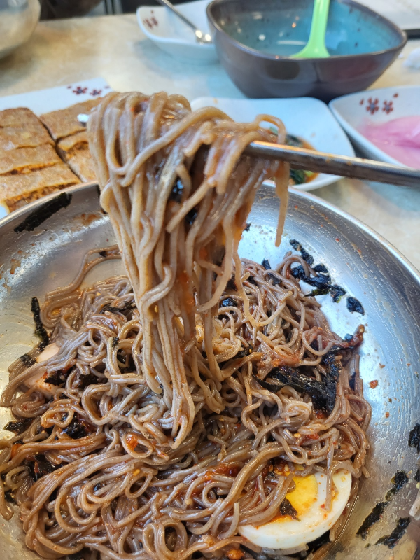 우선 비빔막국수와 메밀온면~ 그리고 빠질 수 없는 메밀전병.
