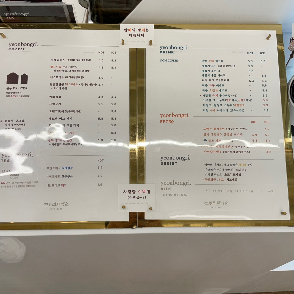 홍천 연봉리제빵소의 메뉴를