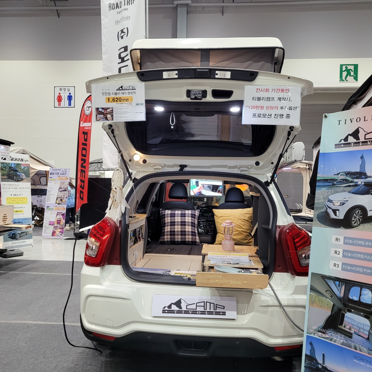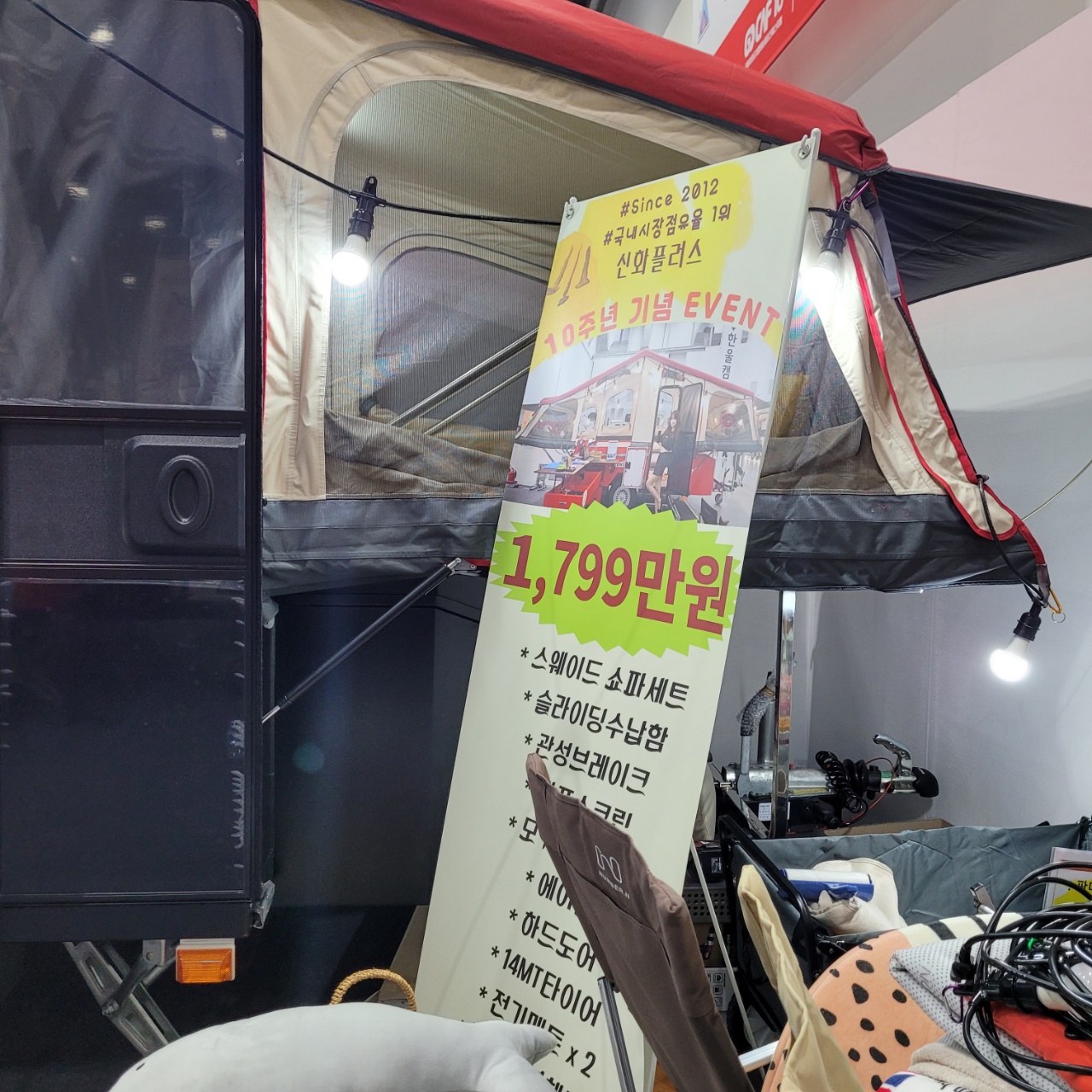 캠핑카, 카라반, 트레일러, 루프탑텐트 등 다양하게 전시되어 있고