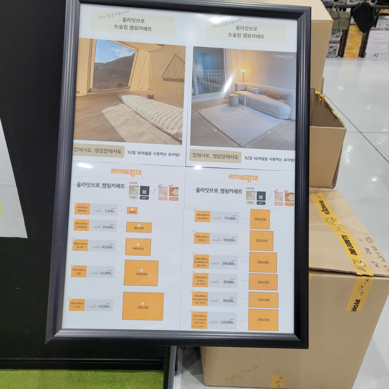 다음은 캠핑용품 전시 및 판매 사진과