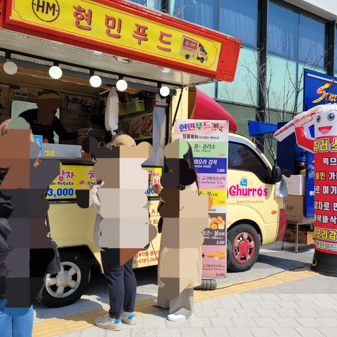 수원메쎄 입구이고, 입구 앞에는 간단한 먹거리로