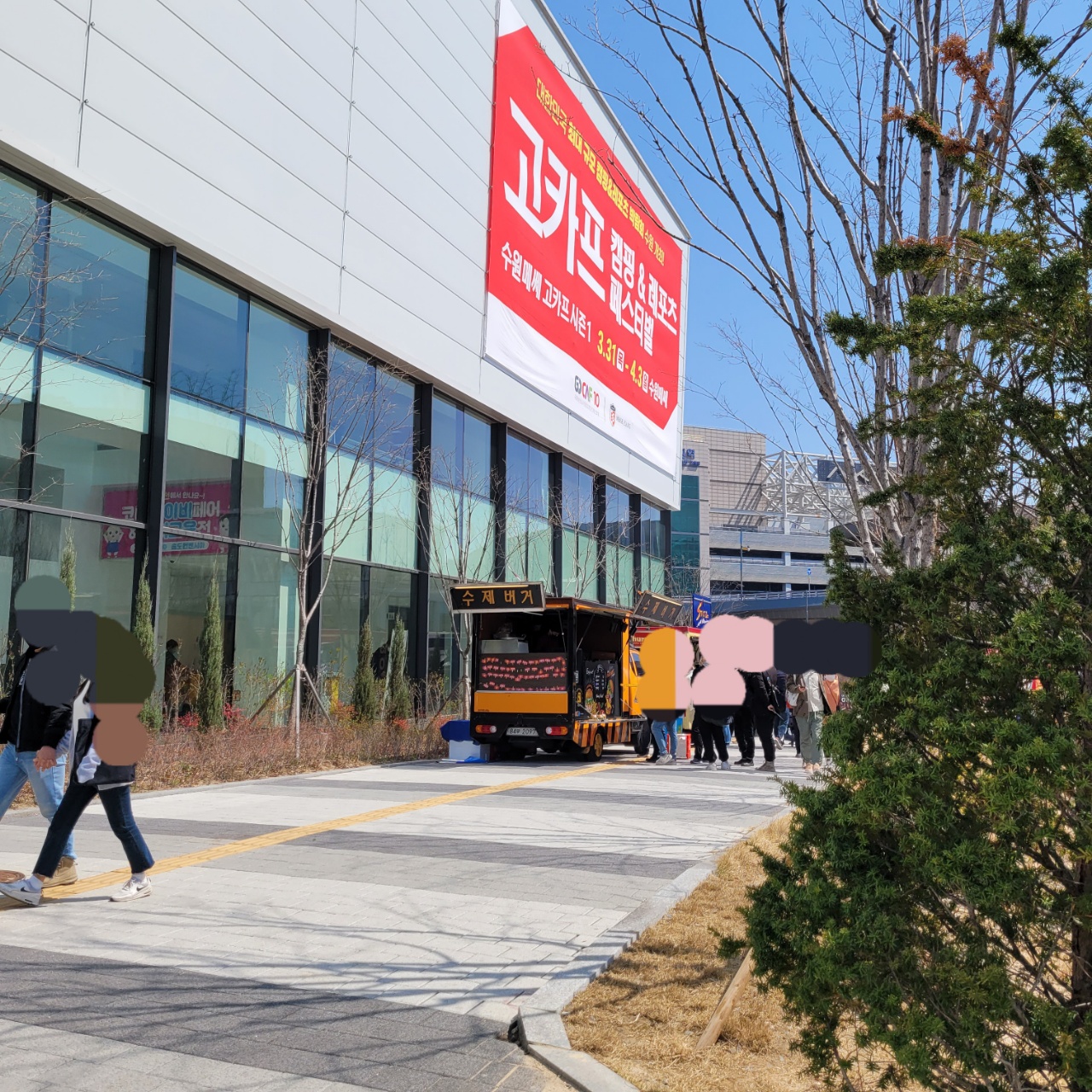 수원메쎄 입구이고, 입구 앞에는 간단한 먹거리로