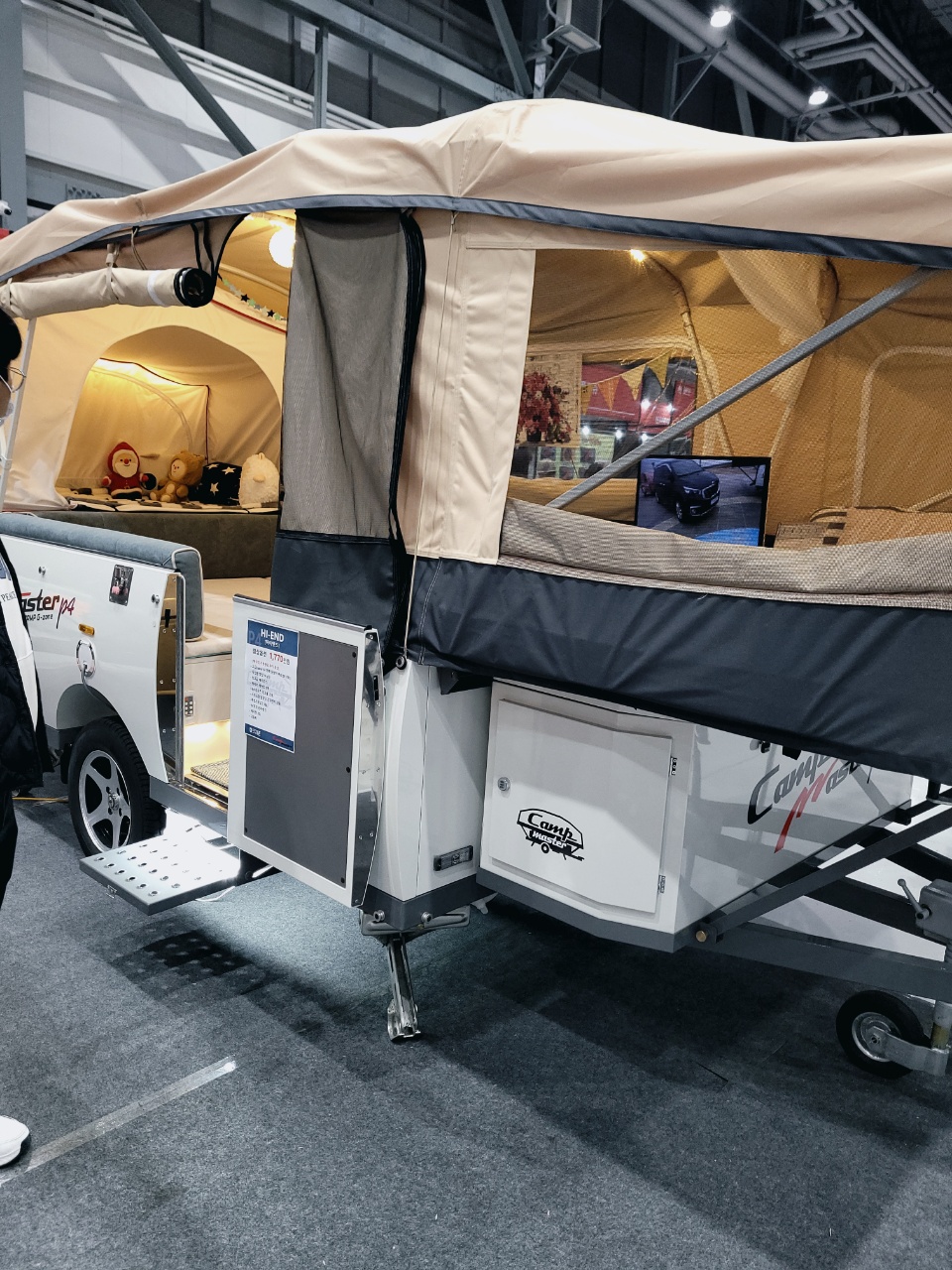 캠핑카, 카라반, 트레일러, 루프탑텐트 등 다양하게 전시되어 있고