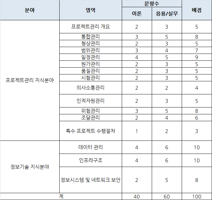 ☞ 프로젝트관리전문가 필기시험 출제 문항수