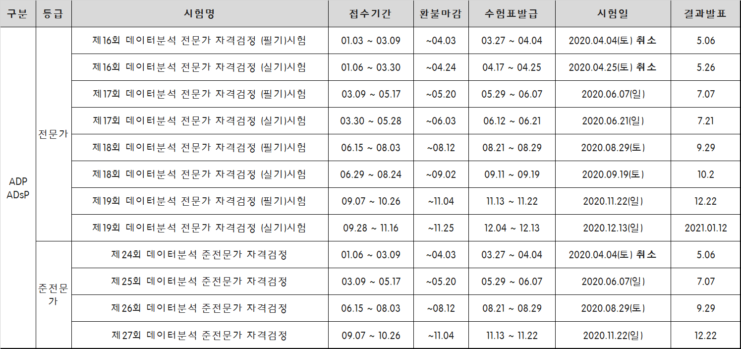 [2020년도 데이터 자격검정 1분기 시험 전면 취소]