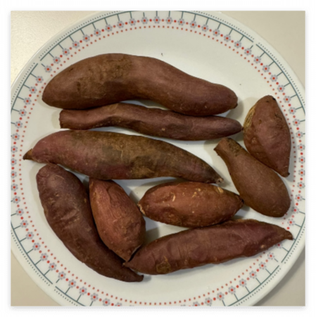 받자마자 작은 크기가 많이 있어 놀라긴 했지만 호박/밤고구마보다 섬유질이 많고 고소한 밤과 달콤한 꿀같이 속이 노랗고 당도가 있는 큰 장점이 있어 작은 크기는 문제가 안되었다. 맛만 좋다면야 크기가 문제인가??