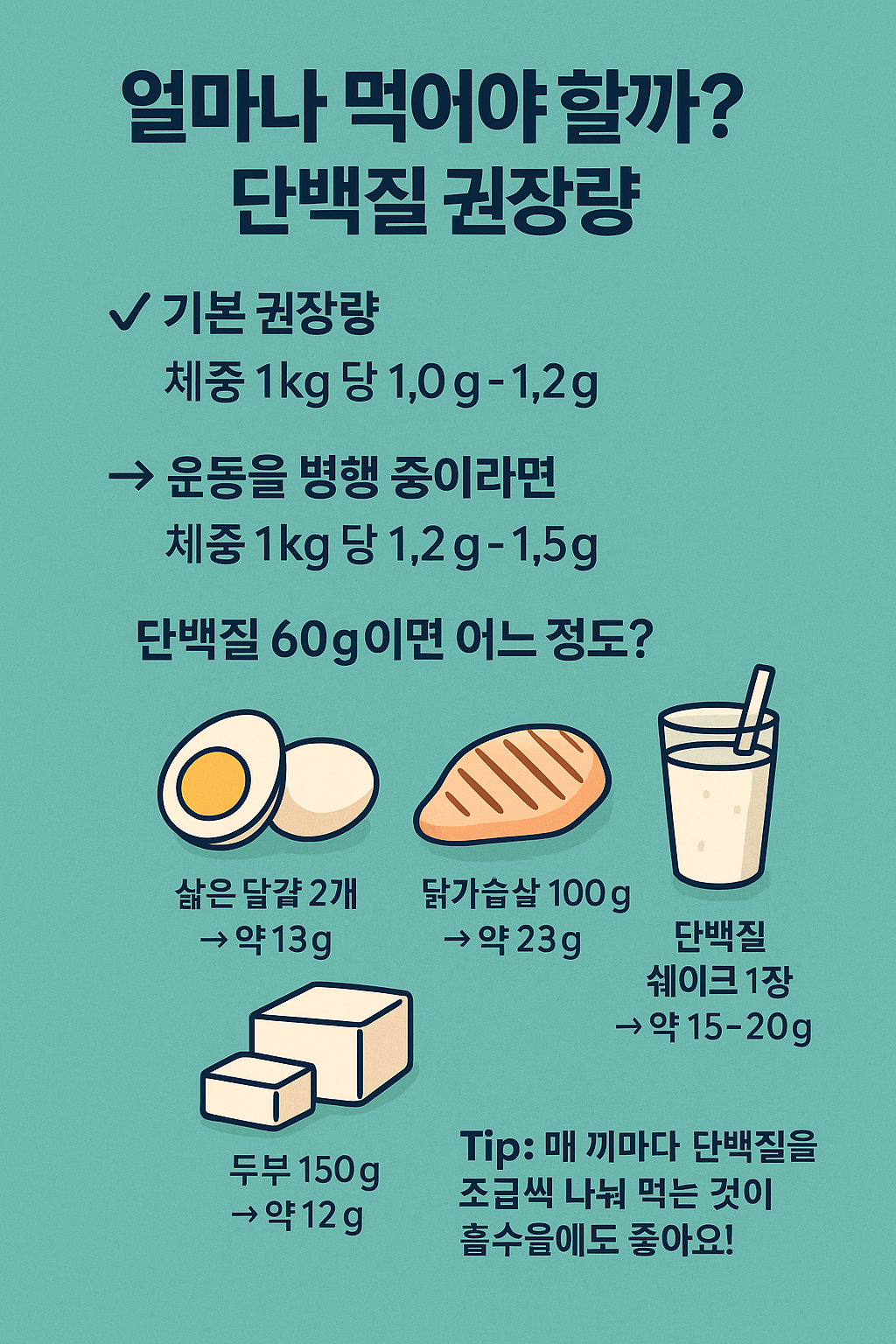 📌 Tip: 단백질은 한 끼에 몰아 먹기보다, 아침·점심·저녁에 나눠서 섭취하는 게 흡수율도 좋고 포만감 유지에도 효과적이에요!