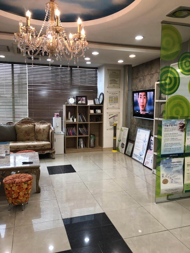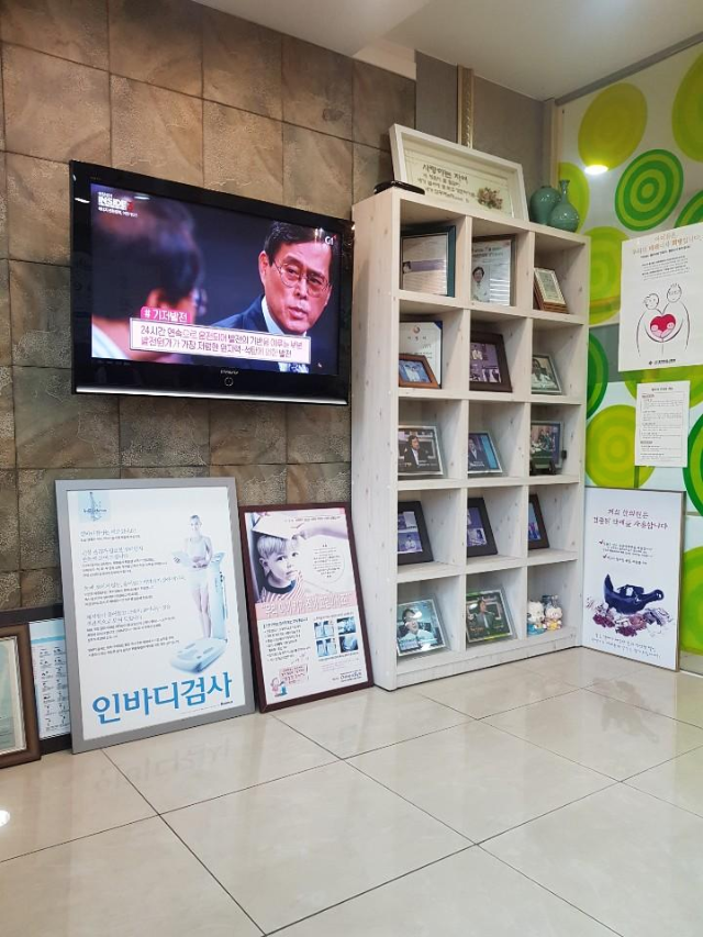 성장 클리닉 전문 원주 당유위 한의원 내부 모습니다.  우측에는 접수처가 있고 간호사 두 분이 계십니다. 안쪽 전면으로는 진료 대기실이 있습니다.  양쪽 벽면에는 당유위 한의원에서 제공하는 각종 정보, 안내사항과 성장 클리닉을 비롯한 클리닉에 간단한 사진과 소개글들이 비치되어 있습니다.