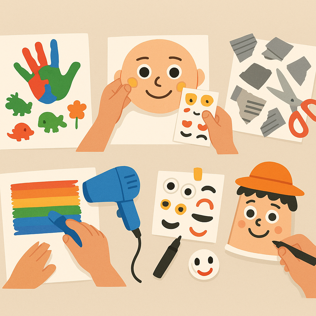 👉 종이에 얼굴형을 그려두고, 눈·코·입 스티커나 그림을 붙이며 꾸며보기