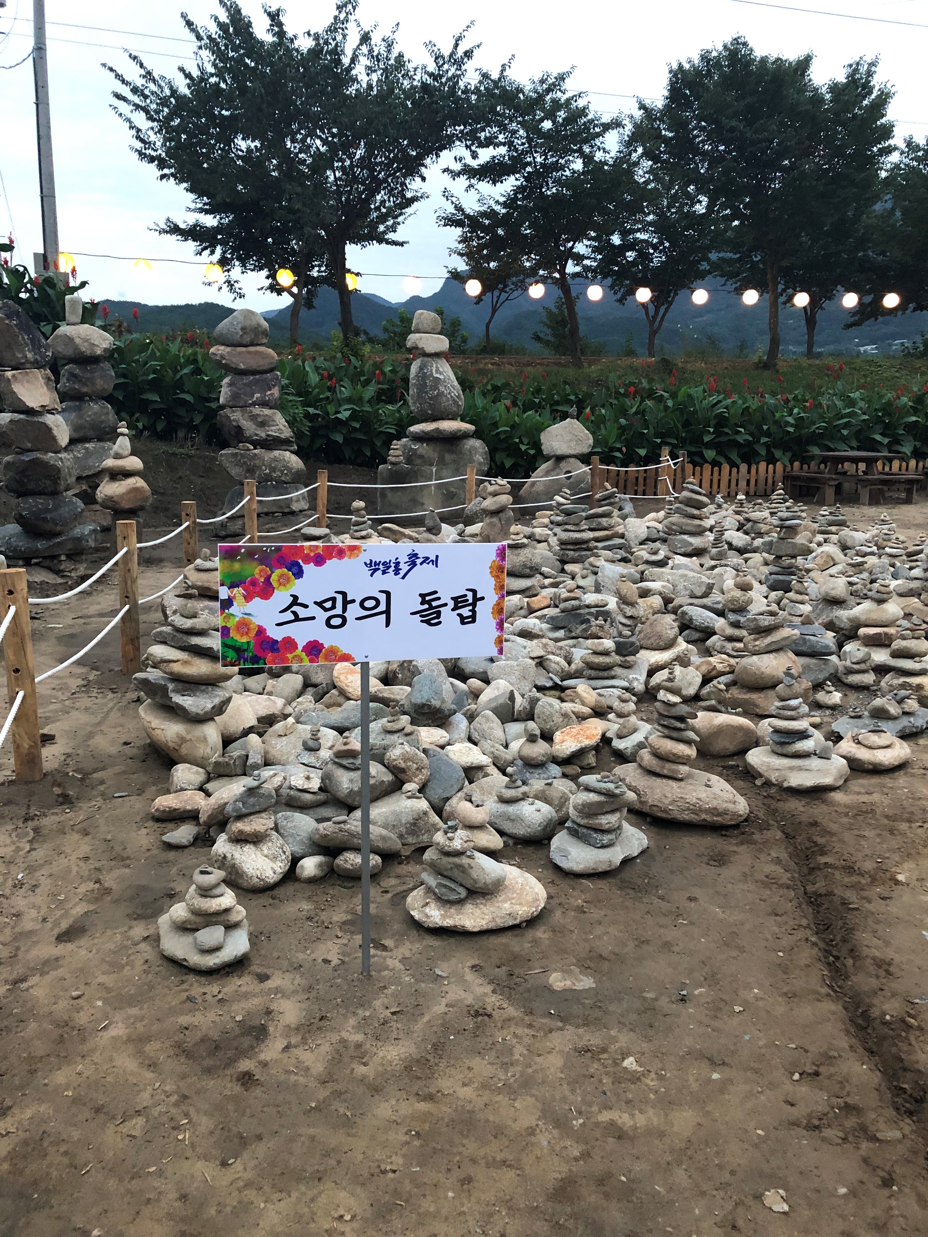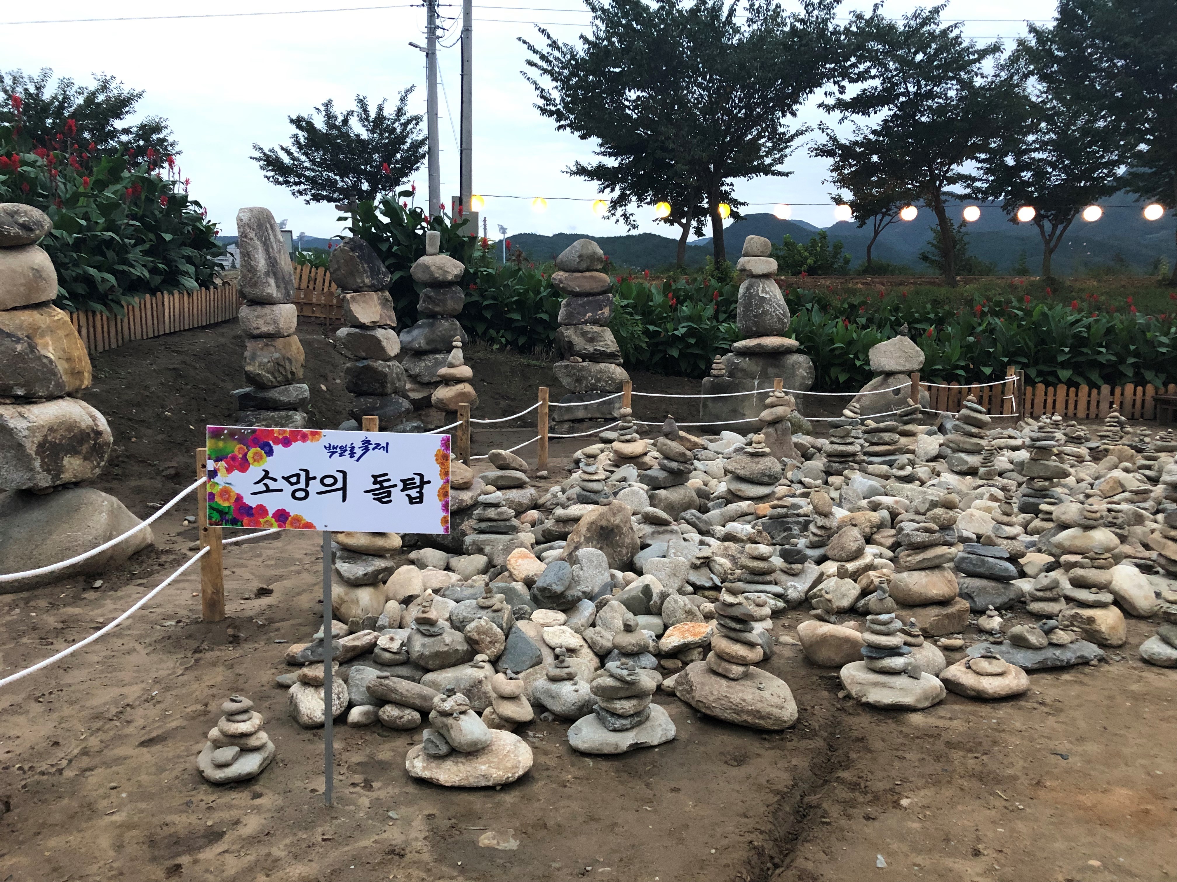 평창 백일홍 축제 꽃밭을 하고 중간쯤 가면 소망의 돌탑 공간이 마련되어 있습니다.