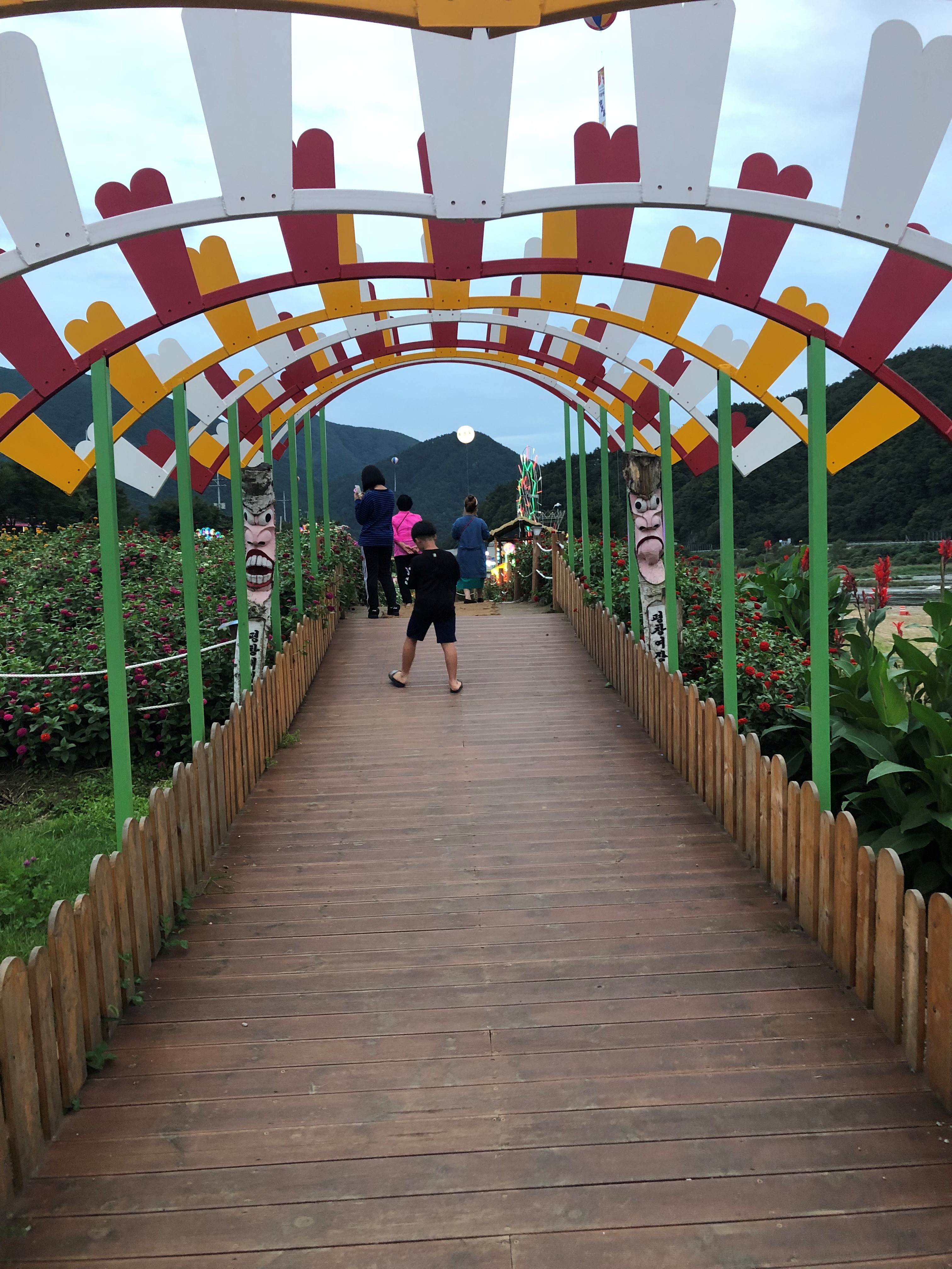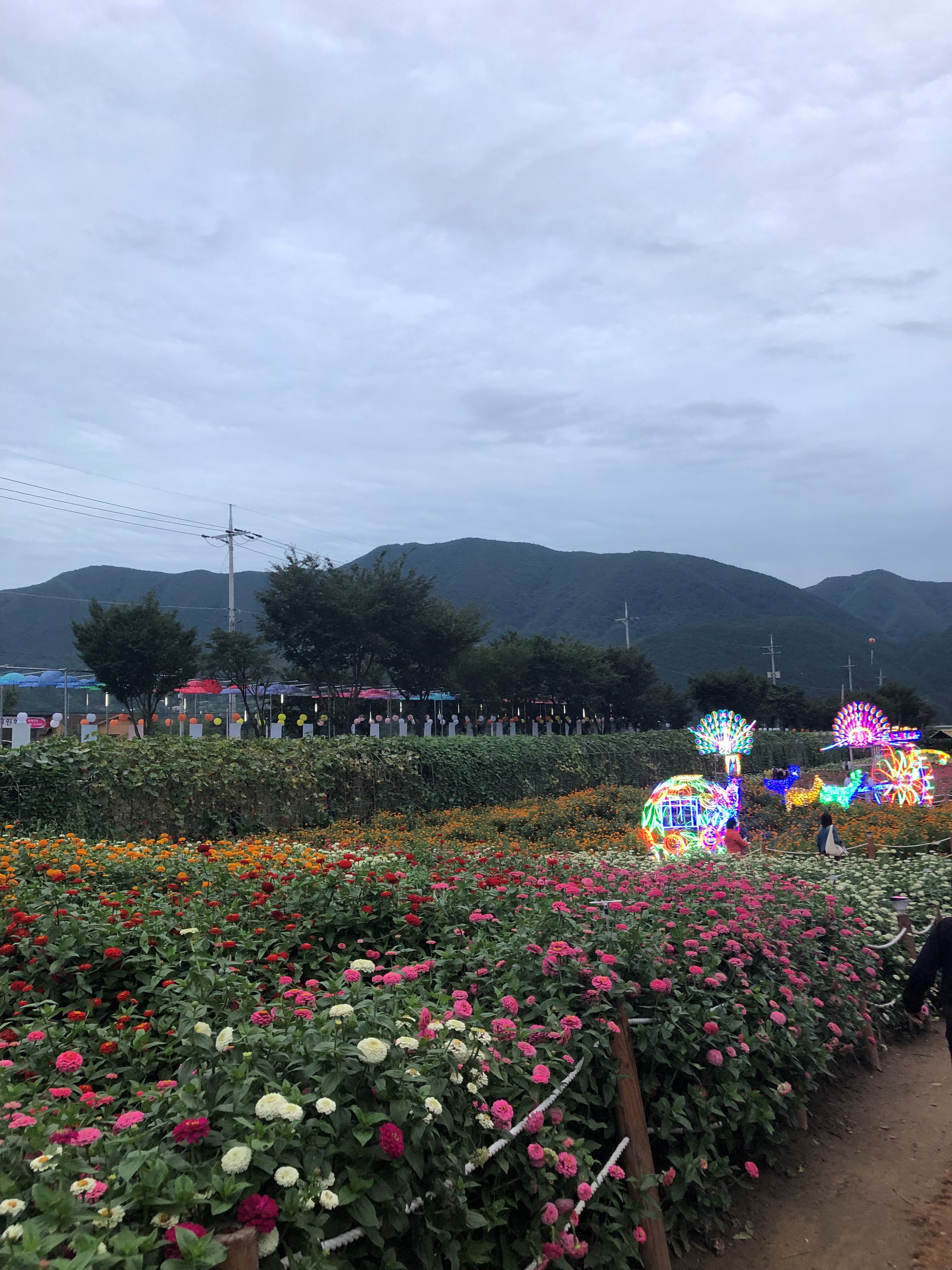 평창 백일홍 축제의 꽃 사진 두 번째입니다. 꽃밭 가운데로 길이 있고 중간중간에 포토존이 준비되어 있어서
