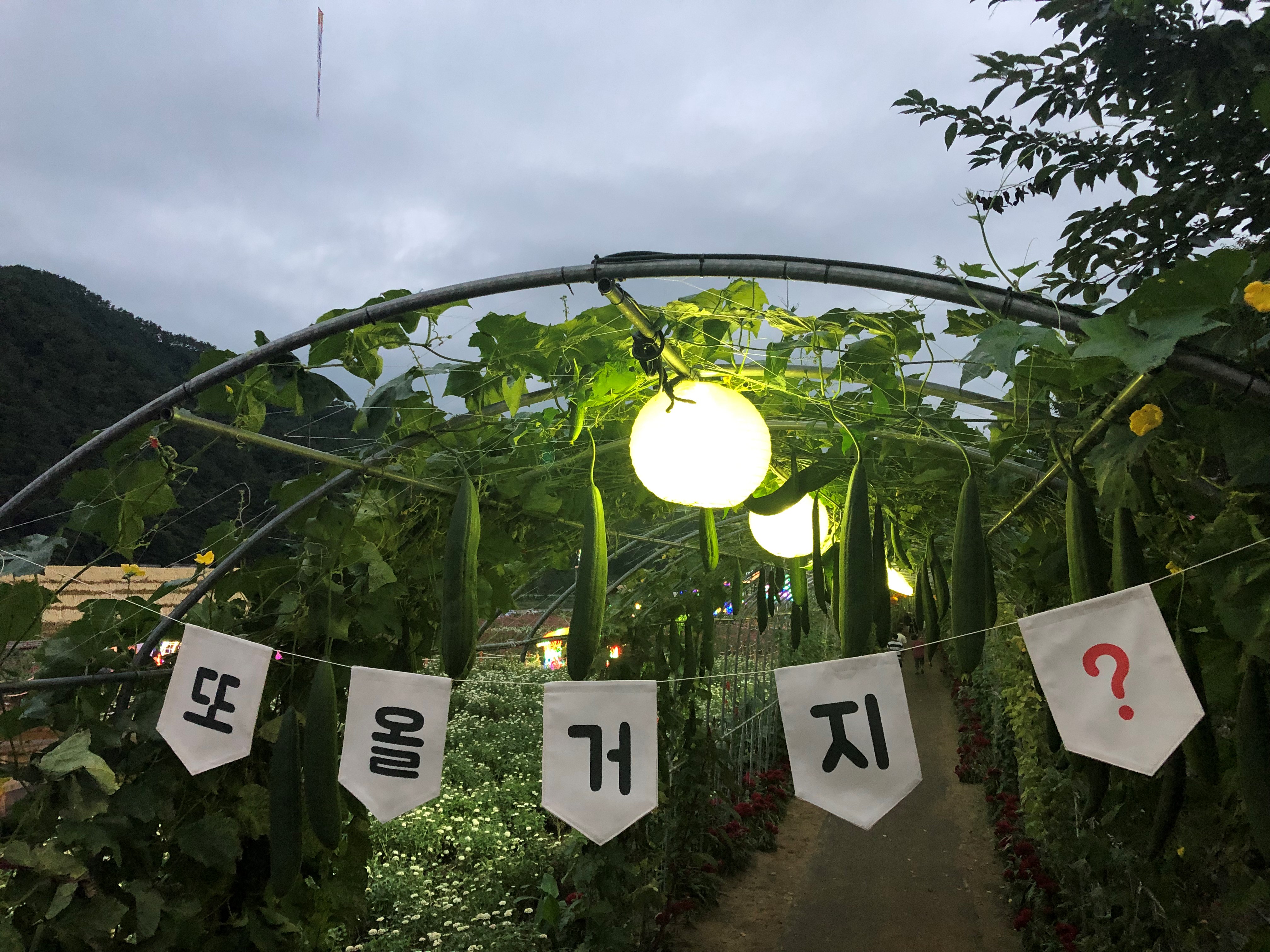 수세미와 호박 넝쿨이 무성하게 숲으로 이루어져 있고,