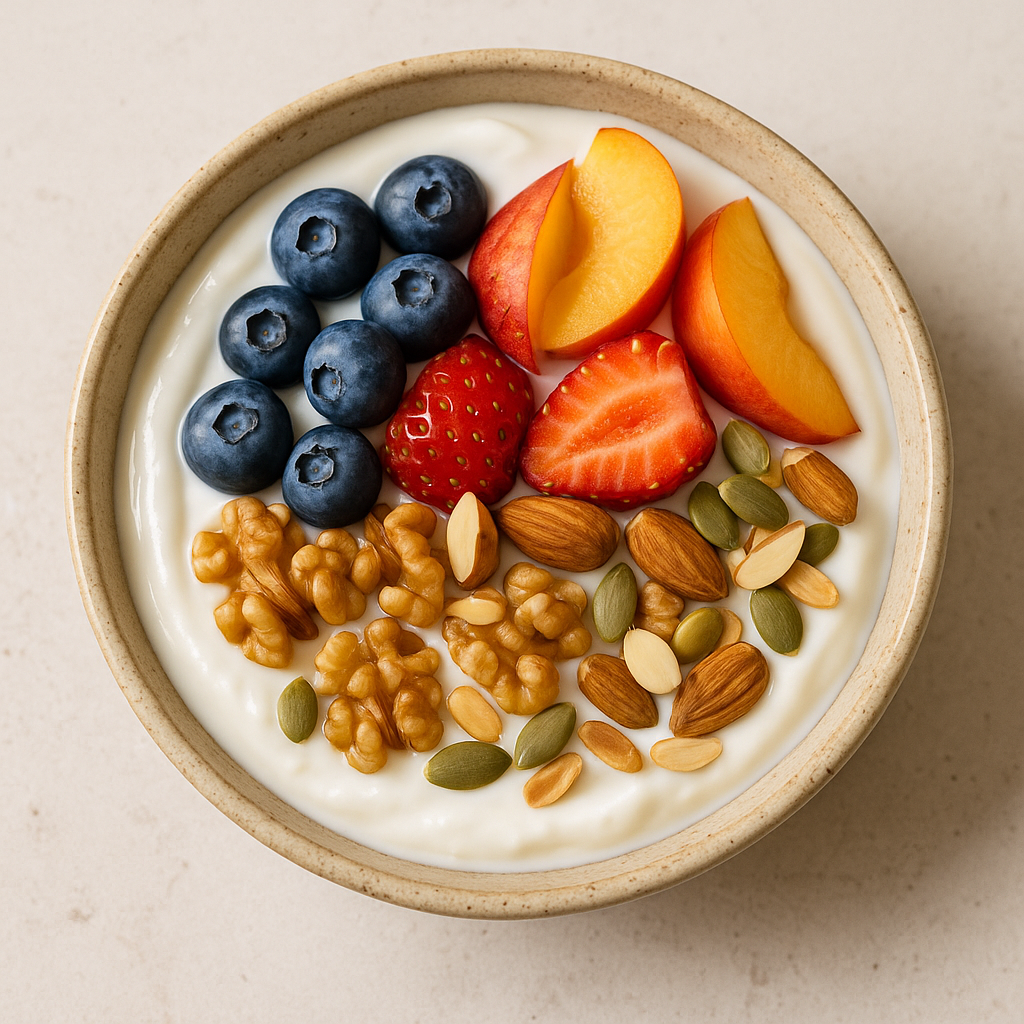 → 포만감 + 혈당 안정 - 플레인 요거트 + 베리류 or 바나나