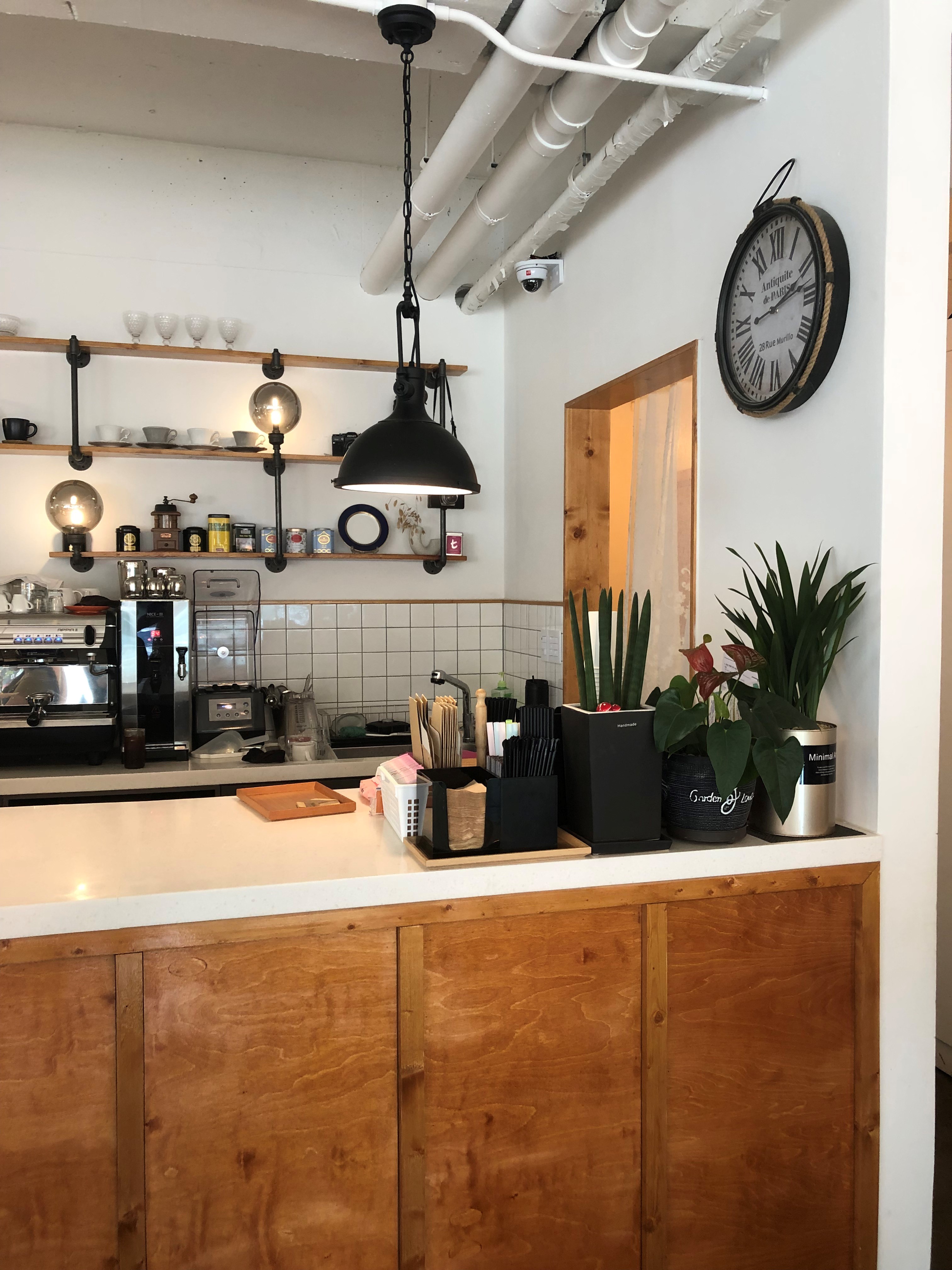 마망스에는 체인점 커피숍에서와 같이 혼자 또는 가전제품 사용자를 위한 바 형식의 테이블이 준비되어 있습니다.