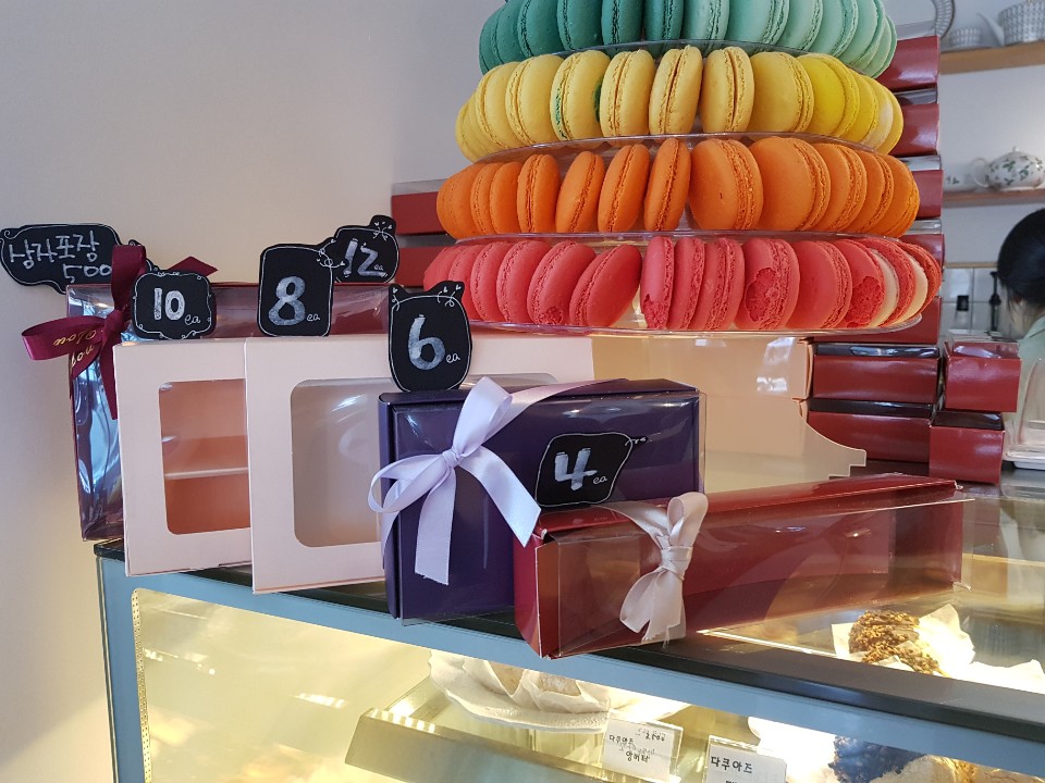 주문을 할 때 마카롱명을 얘기하면 그 자리에 바로바로 꺼내서 주어서 신선하게 보관된 음식을 바로 먹게된다는 느낌을