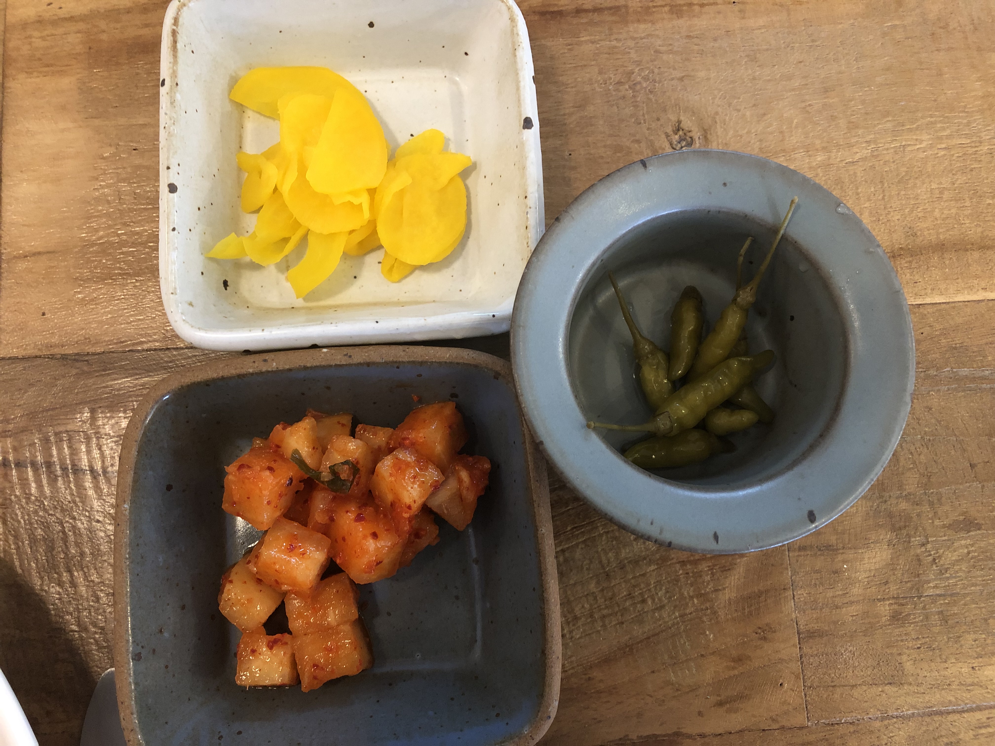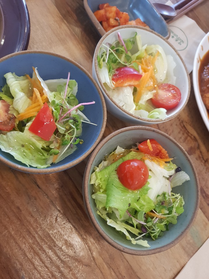 미리 주는 밑반찬 깍두기와 샐러드 야채도 자극적이지 않고 먹으면서도 몸이 건강해진다는