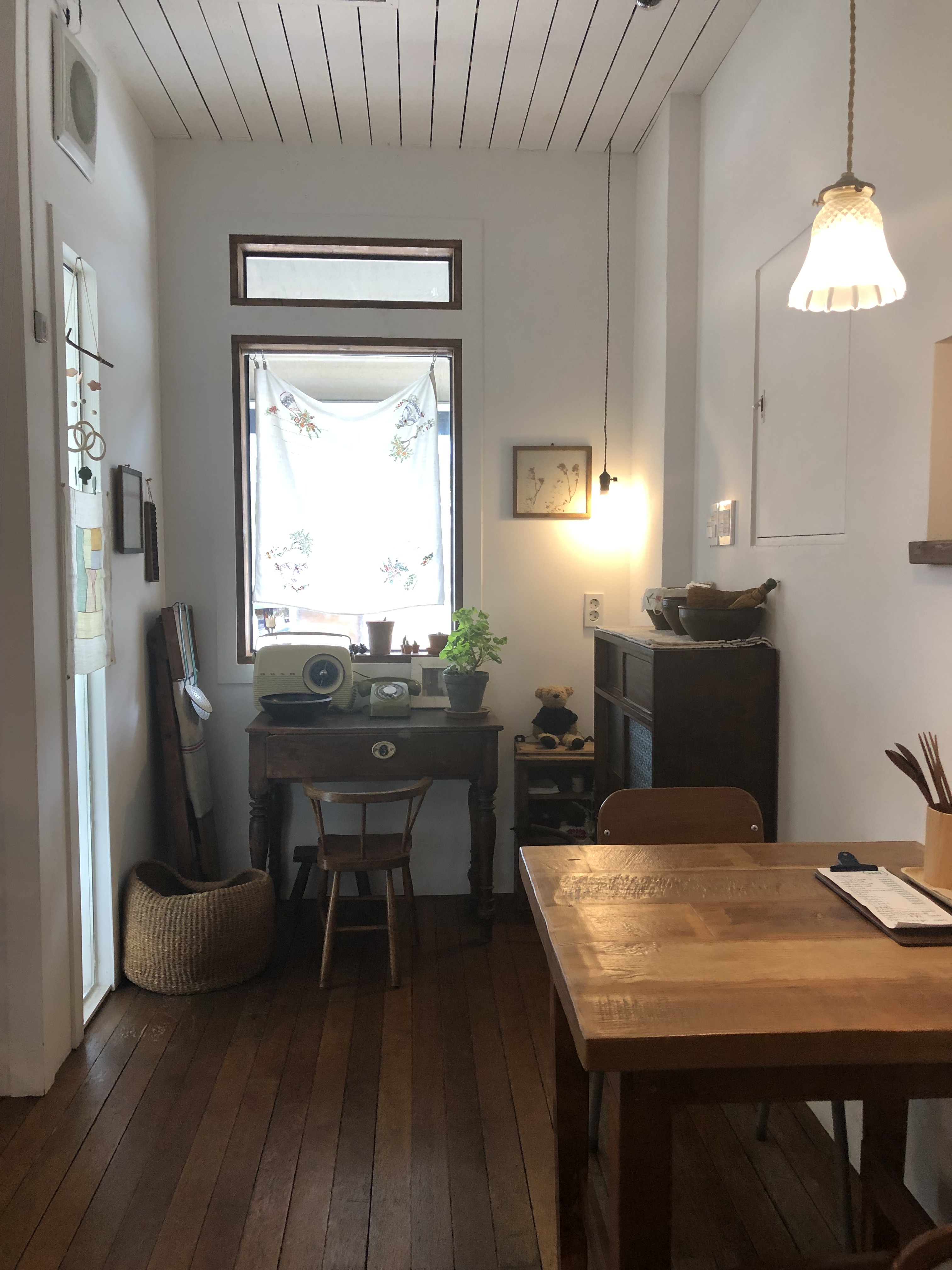 작은부엌의 실내 모습의 느낌은 고풍스럽고 아담하고 아기자기한 느낌으로 구성되어 있습니다.