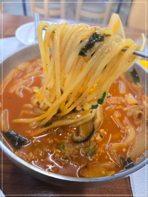 쫀뜩한 느낌에 찰진 느낌이 더한 몽짬뽕 면발.