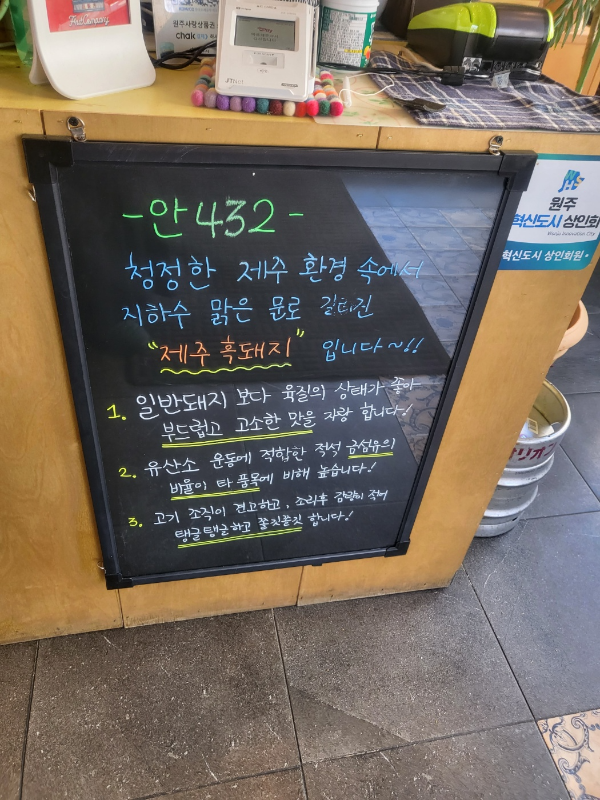 좋다고 하는데 안432 고기는 따뜻한 제주산 돼지, 흑돼지만을 사용해