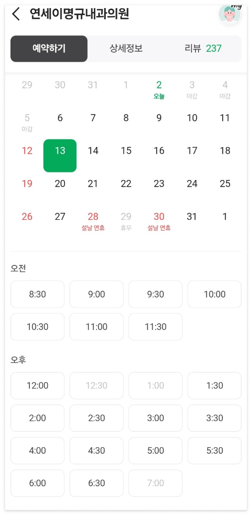 당일뿐만 아니라 해당 주는 예약이 미리 마감되는 듯싶다.