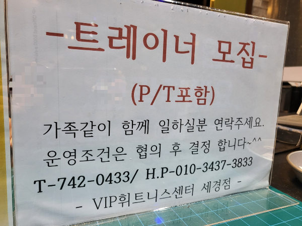 가족같이 함께 일할 트레이너 쌤도 구함.