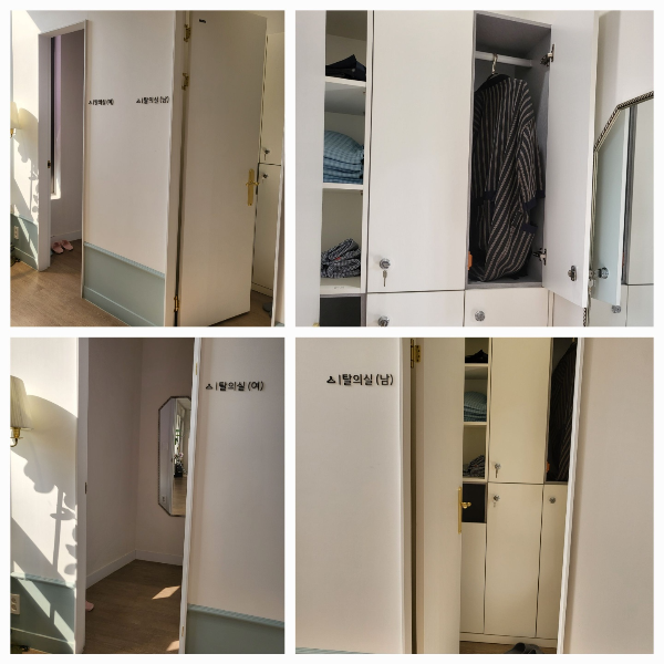 한사람 들어갈수 있는 작은 크기이며 옷들이 가지런히 분류되어있다.