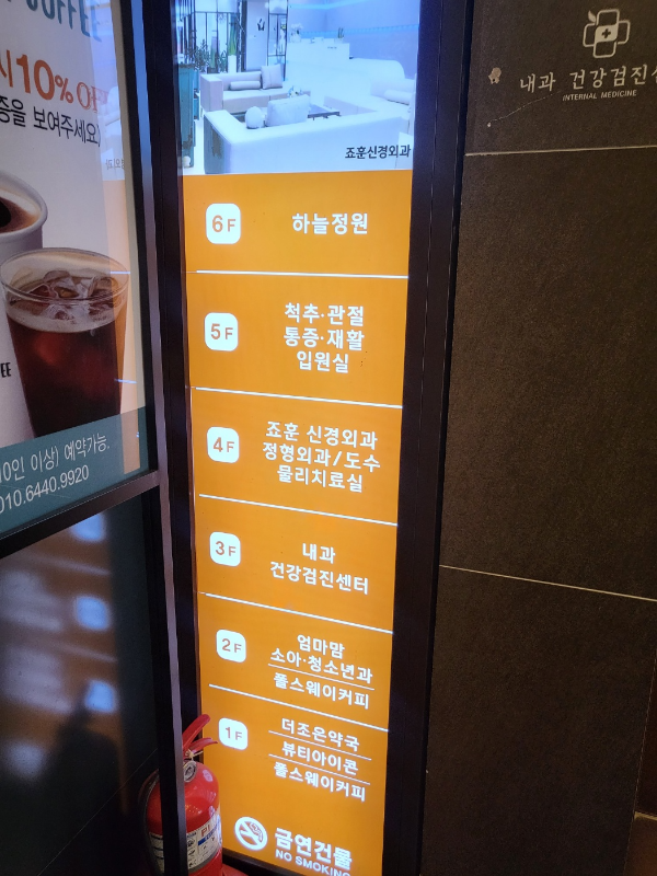 3, 4, 5층은 죠훈병원이며 1층에는 약국과 카페,