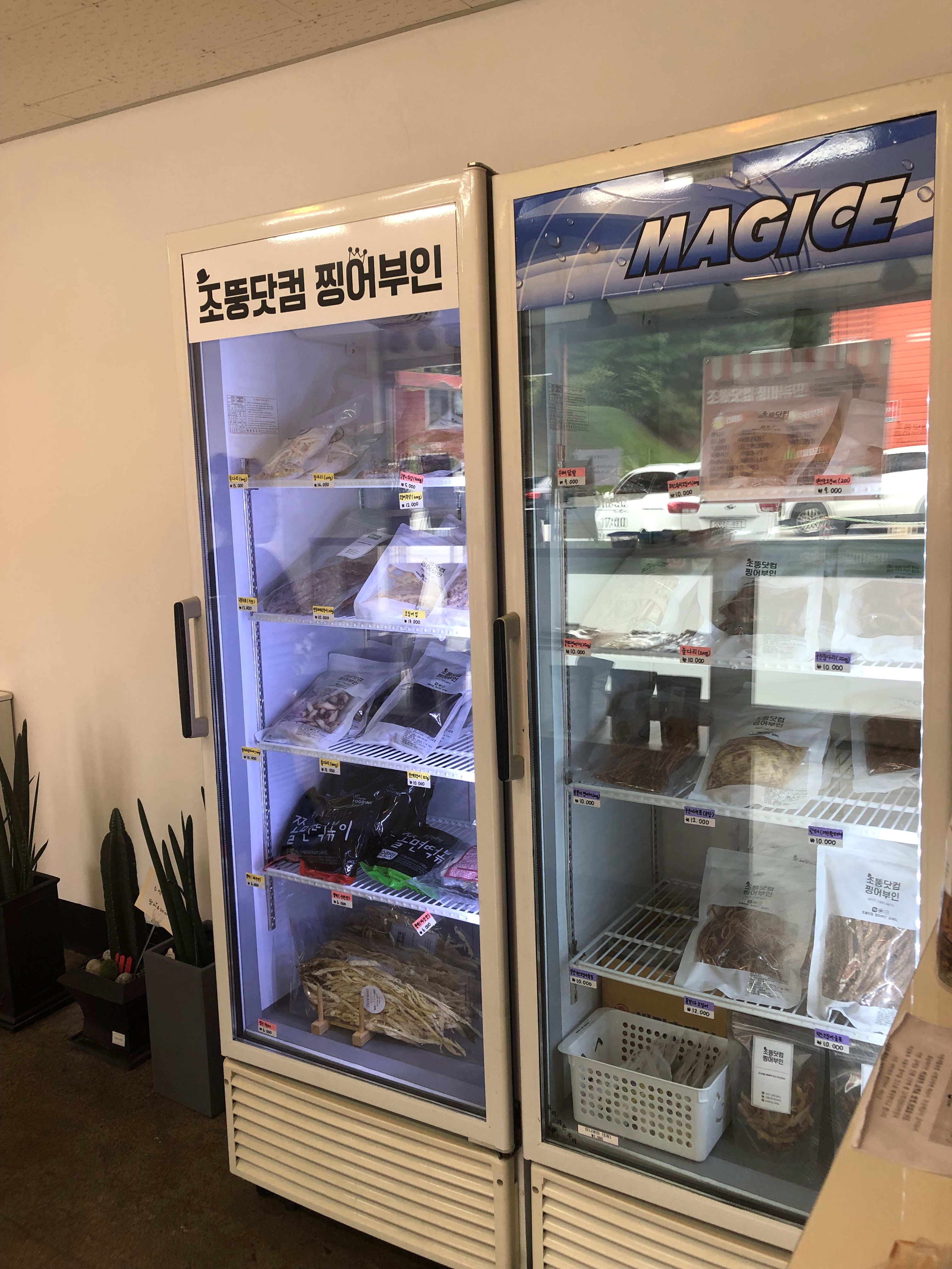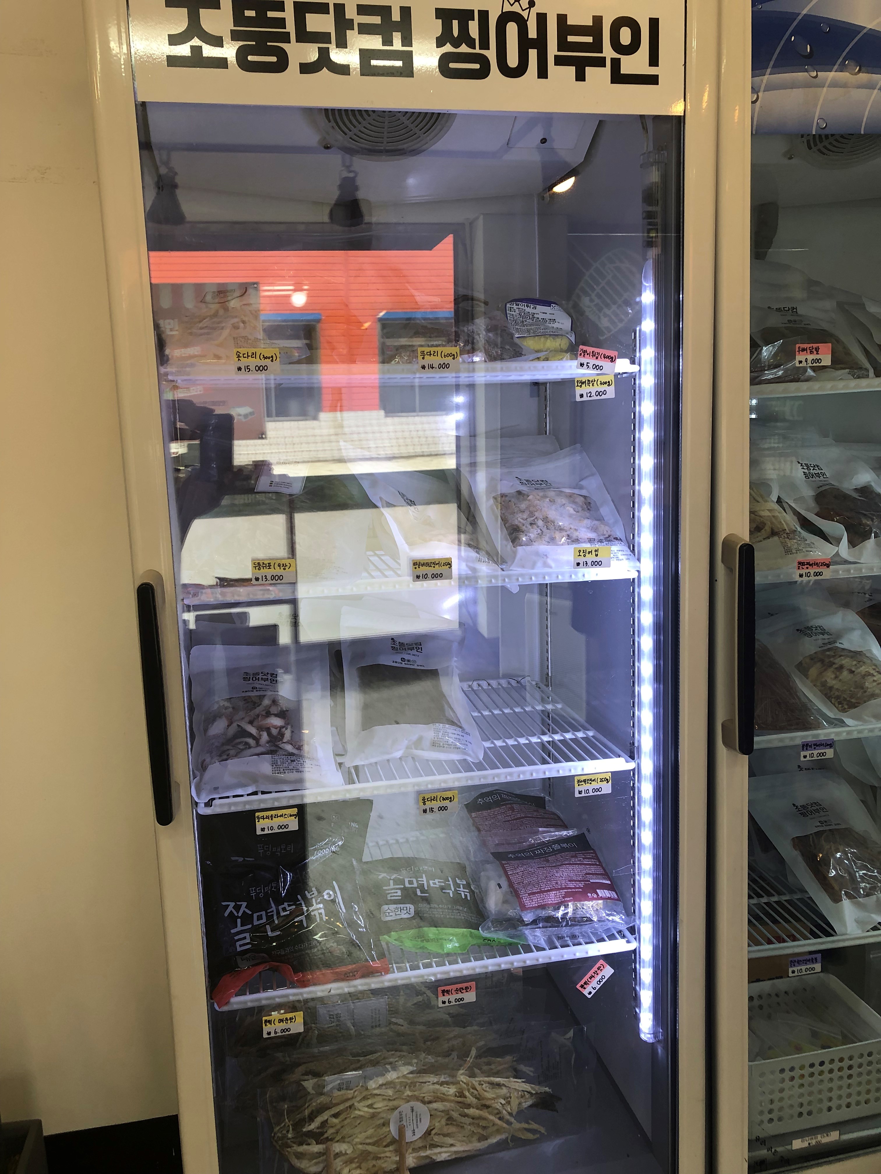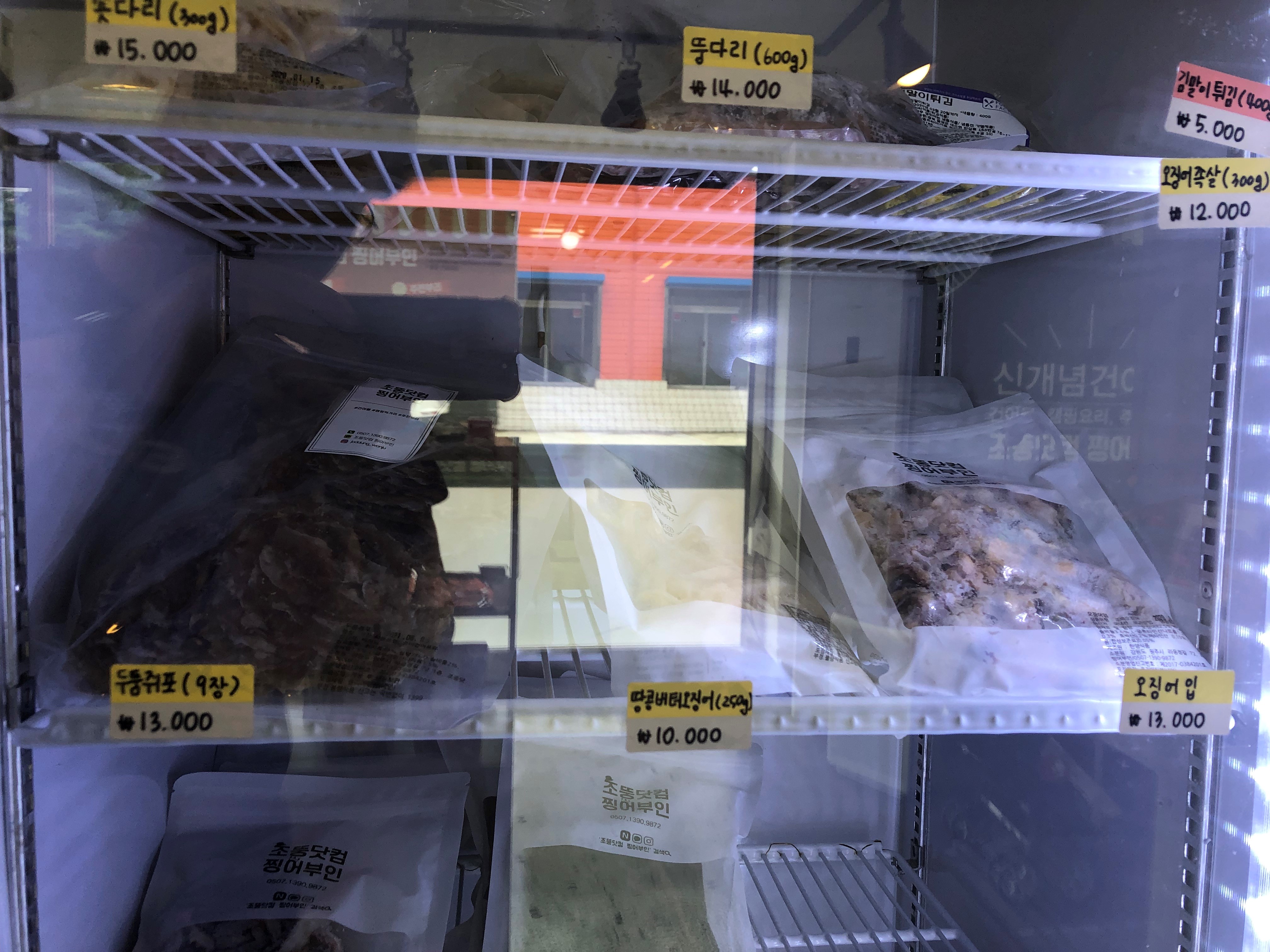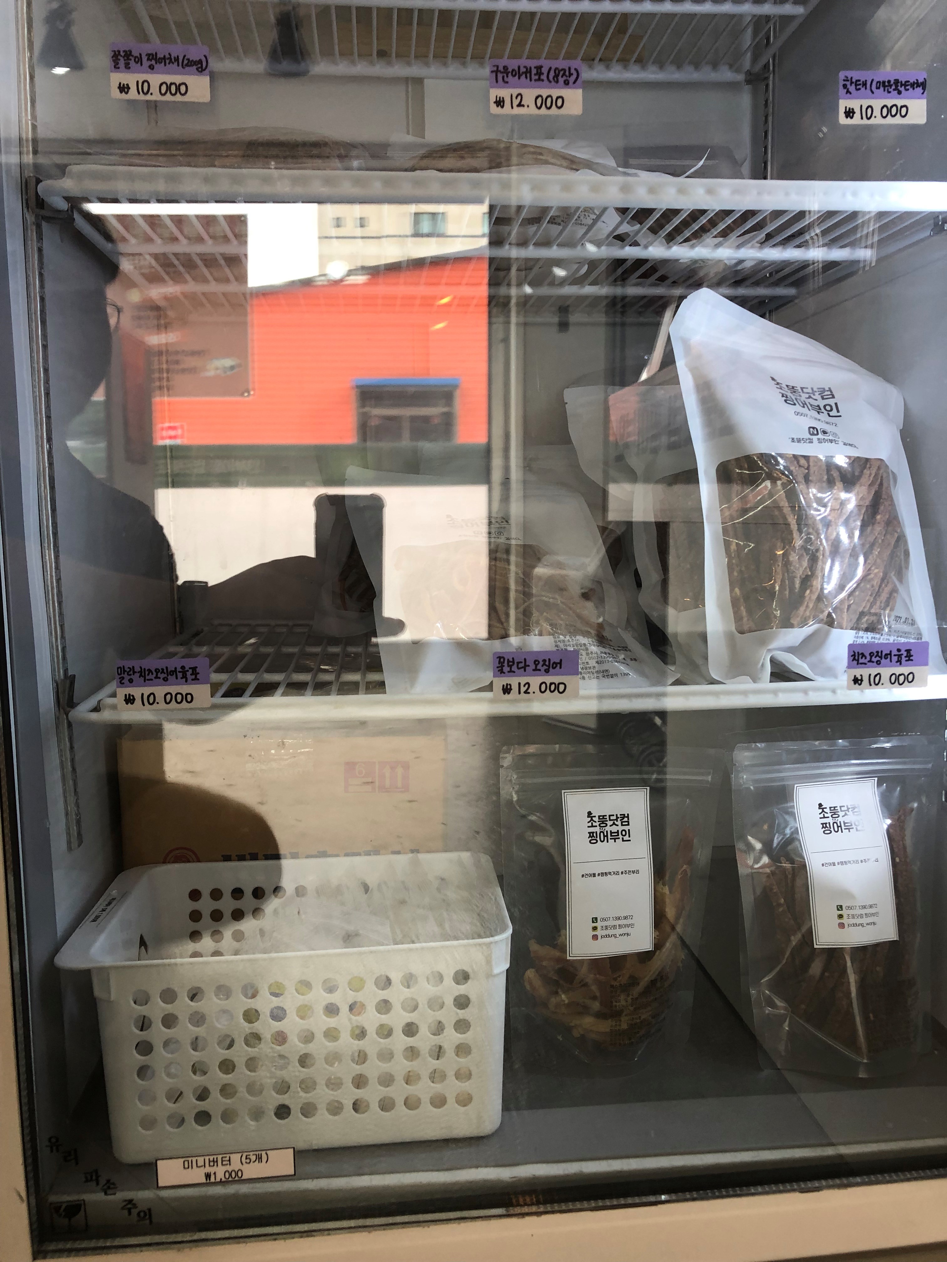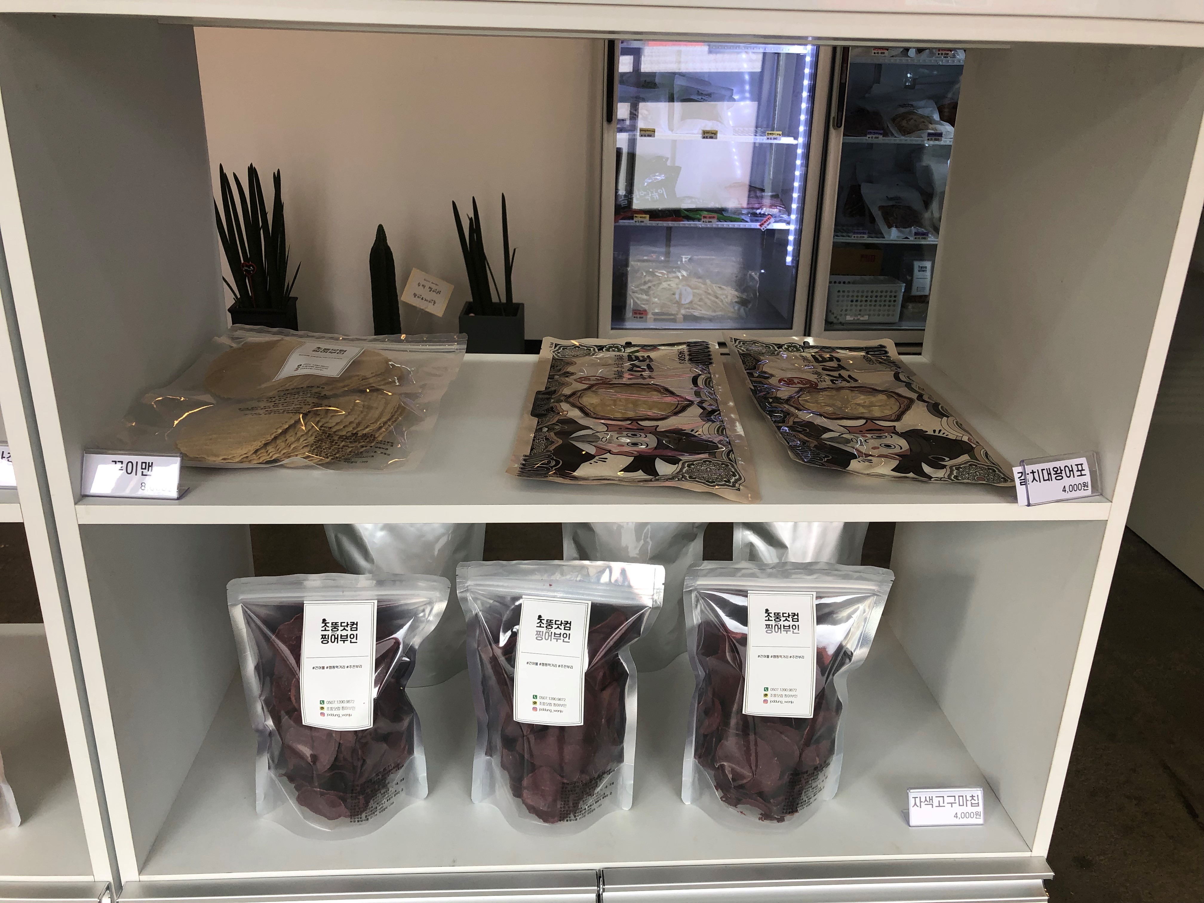 조뚱닷컴 찡어부인 매장 안에는 여러 종류의 신개념 건어물 종류들이 가지런히 진열되어 있습니다.