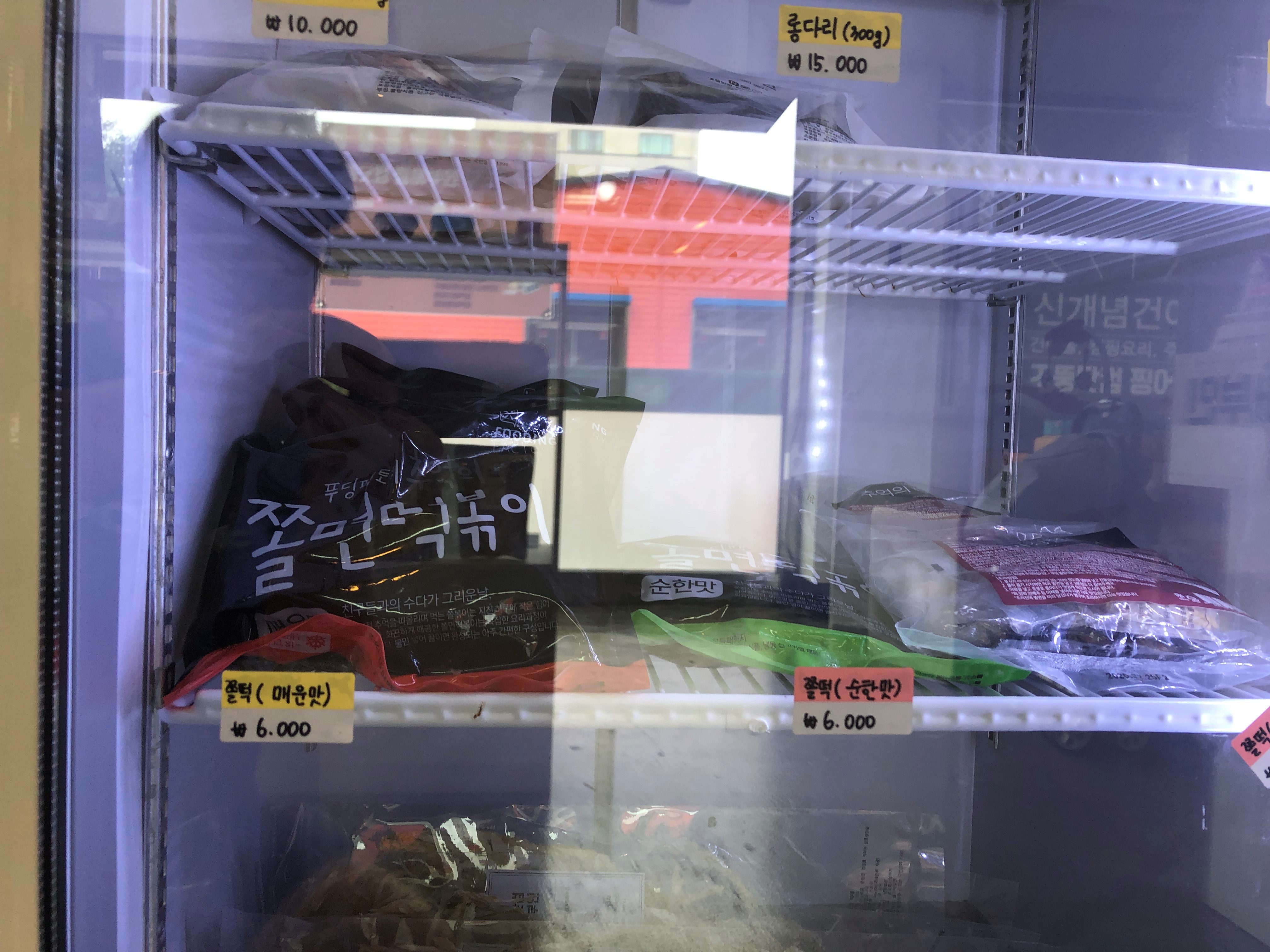 종류를 살펴보면 찢은 먹태, 롱다리, 쫄떡(매운맛, 순한맛), 뚱다리슬라이스, 롱다리, 김말이튀김, 두둥쥐포,