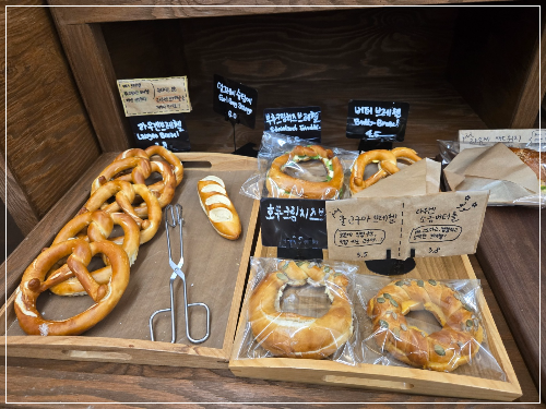 프레첼 맛집답게 여러 맛 프레첼이 준비되어 있고