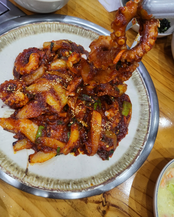 흰밥에 낙지볶음 그리고 콩나물/연두부 넣고