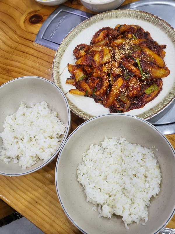 흰밥에 낙지볶음 그리고 콩나물/연두부 넣고