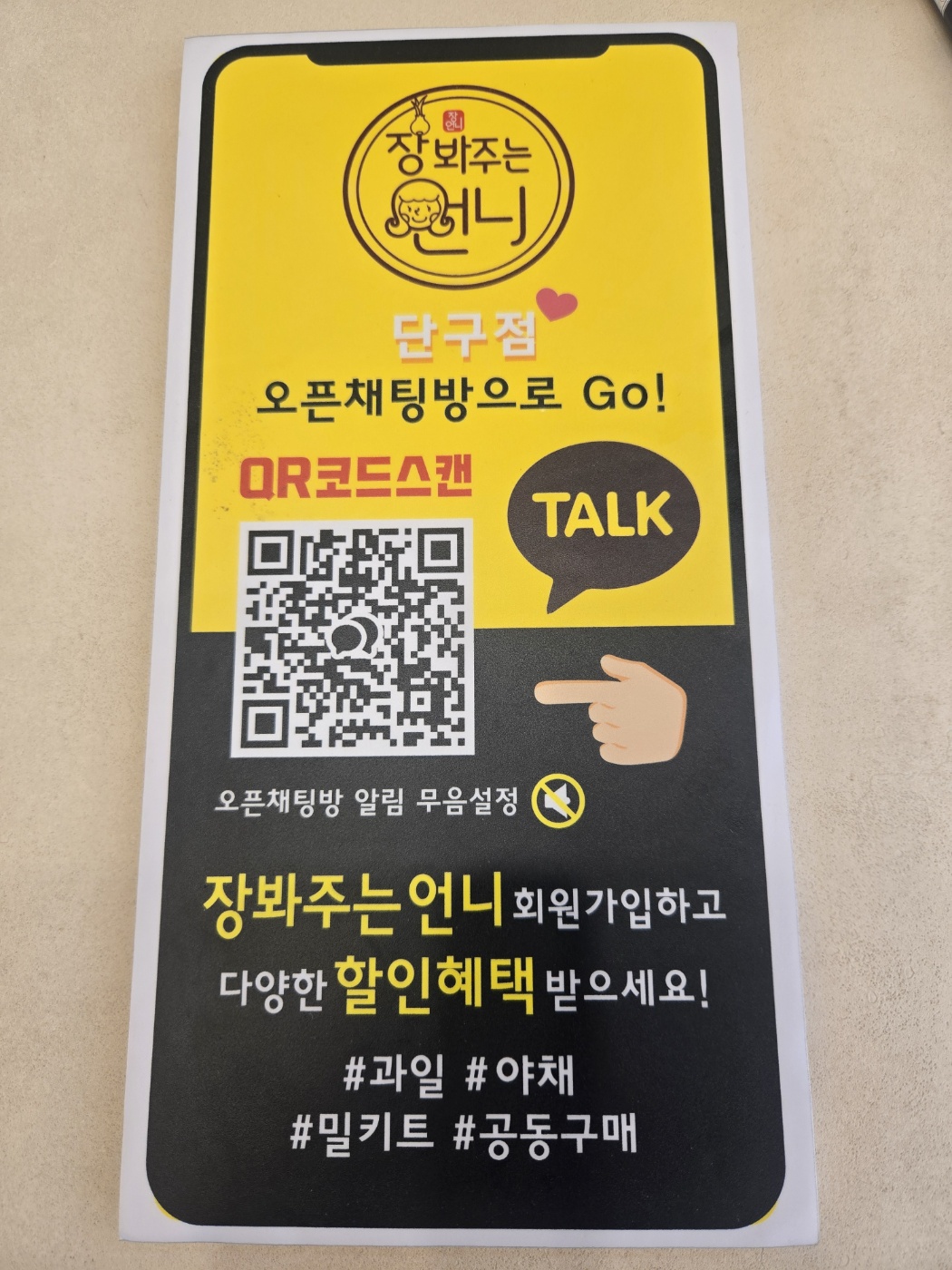 가게 안에 준비된 QR코드만 스캔하면 바로 가입 가능한 오픈채팅방이 있어요.
