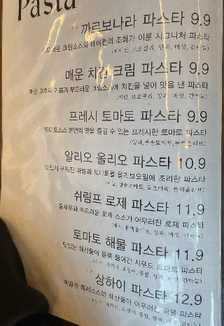 그 남자의 파스타 메뉴판 입니다. 일부만 찍게 되었어요. 주문하고 나니 바로 가지고 가셔서...