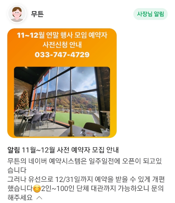 코로나도 풀려 각종 연말행사가 많을듯 싶은데 미리미리 예약하세요~