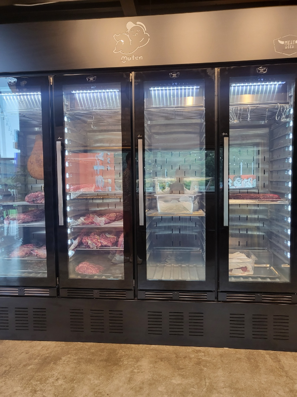 안에 들어서면 고급진 와인과 신선한 육류들이 있습니다.