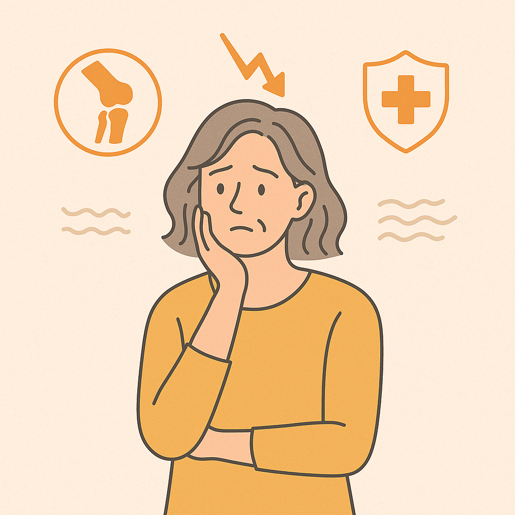 특히 폐경 전후에는 칼슘 부족, 비타민D 결핍, 혈관 건강 악화 등이 나타날 수 있어 영양 불균형을 막기 위한 관리가 꼭 필요해요.