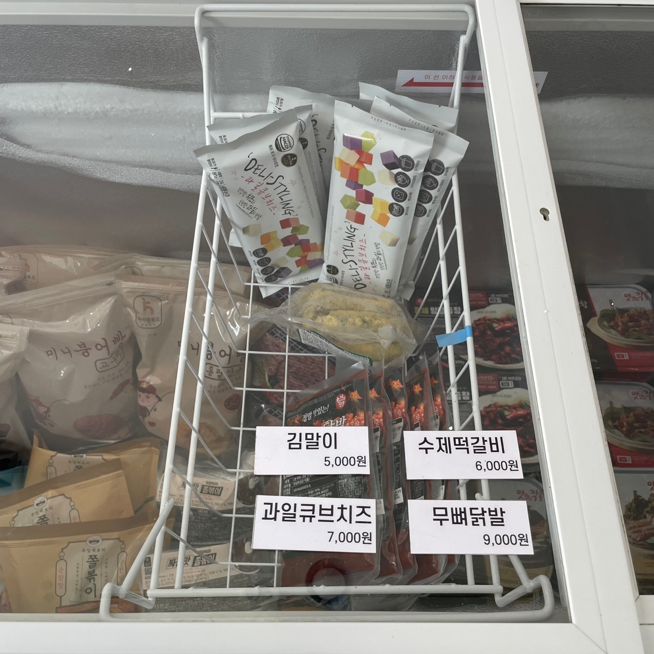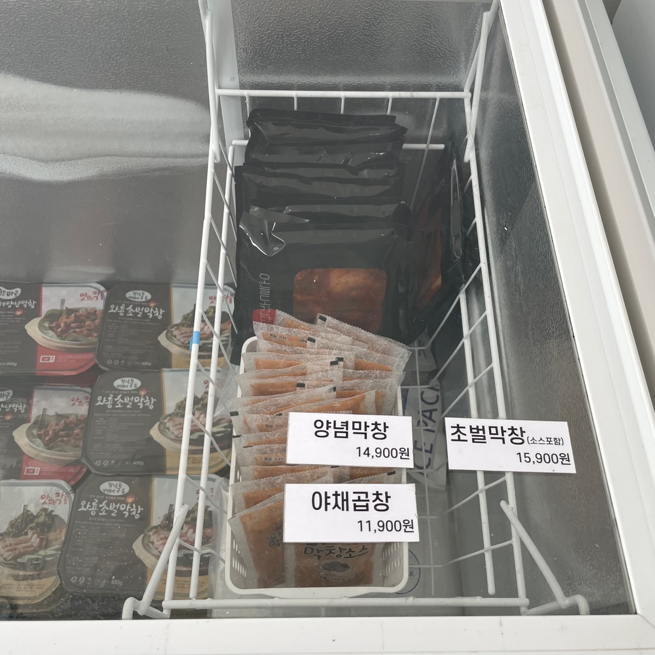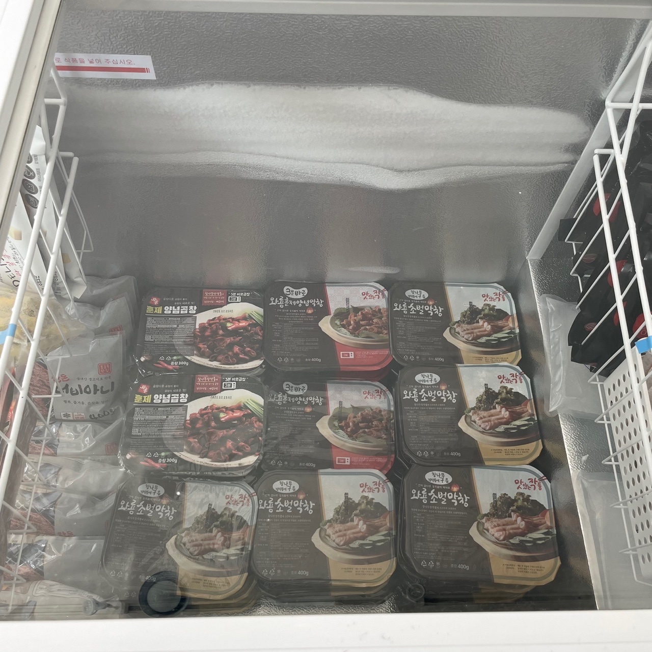 냉동식품으로는 양념막창, 야채곱창, 초벌막창, 김말이, 수제떡갈비, 무뼈닭발, 쫄뽂이 등 여러제품이 있고요