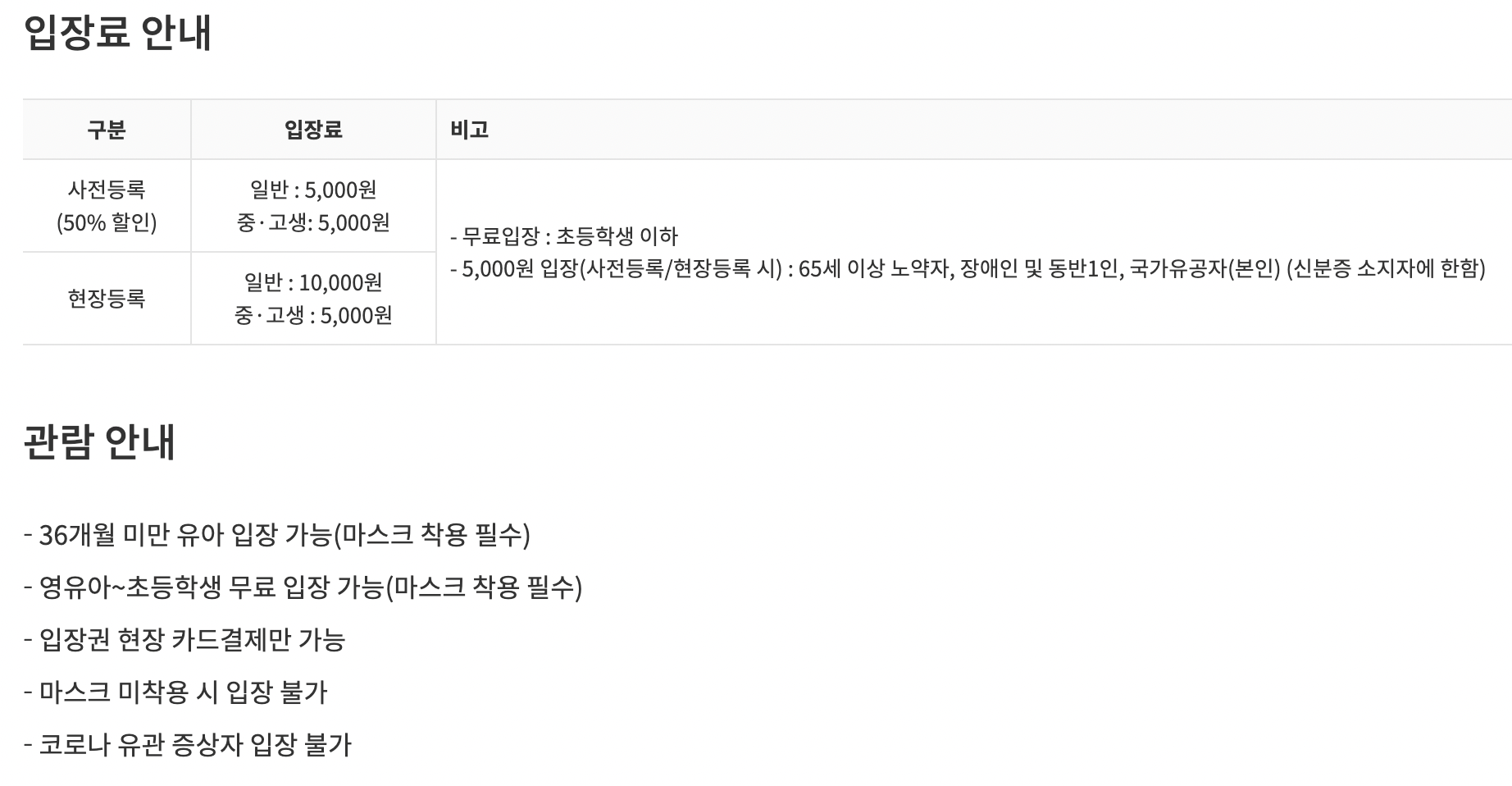 입장료 및 관람 안내