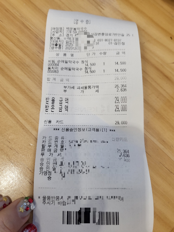 백운봉 막국수 영수증 지참시